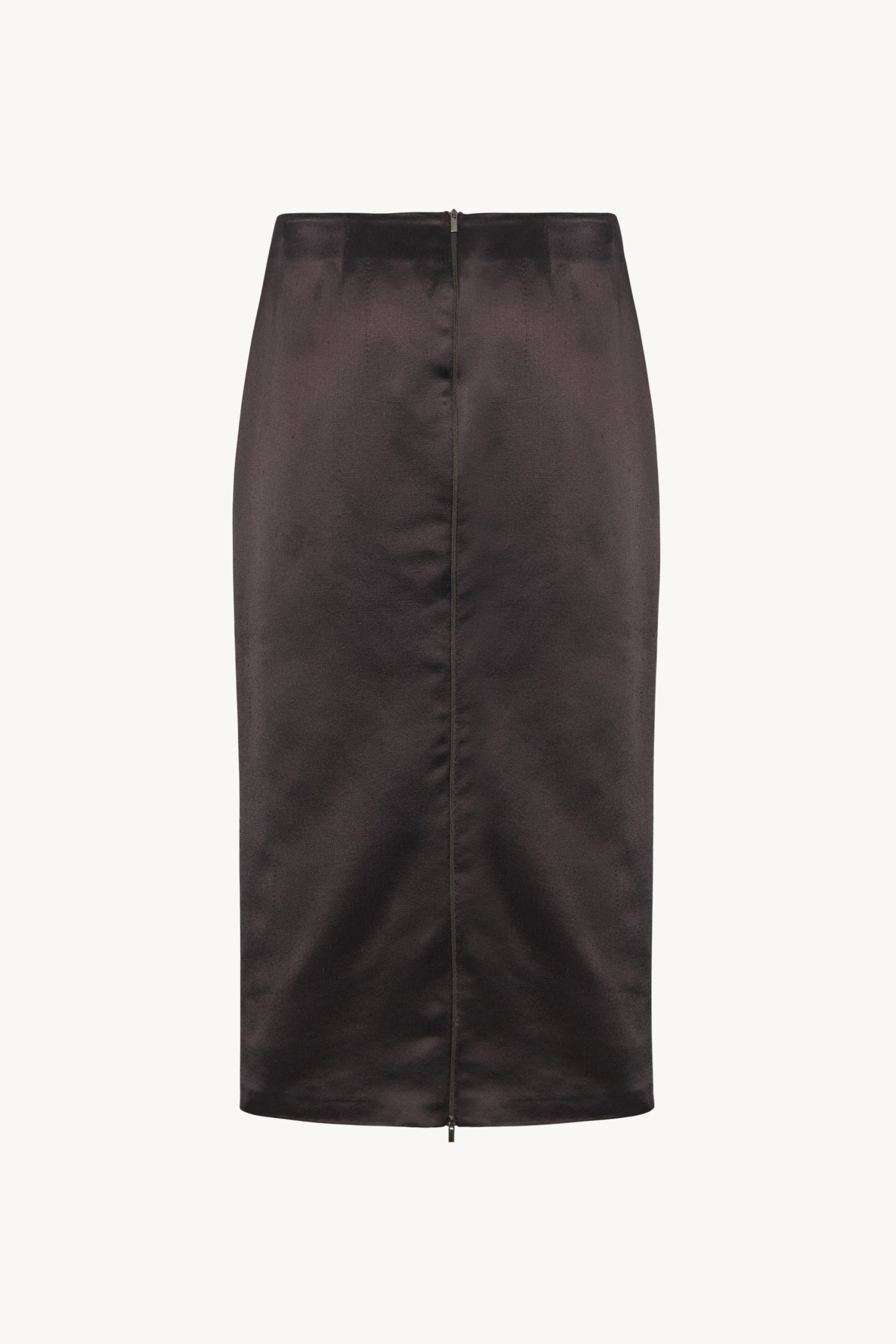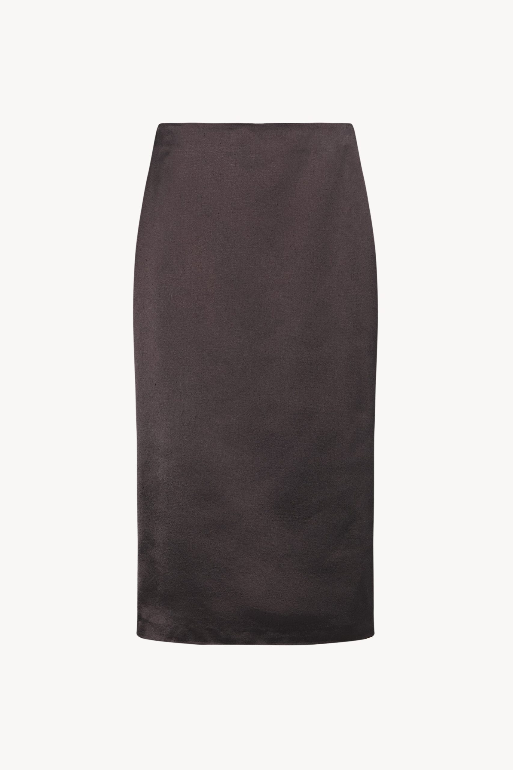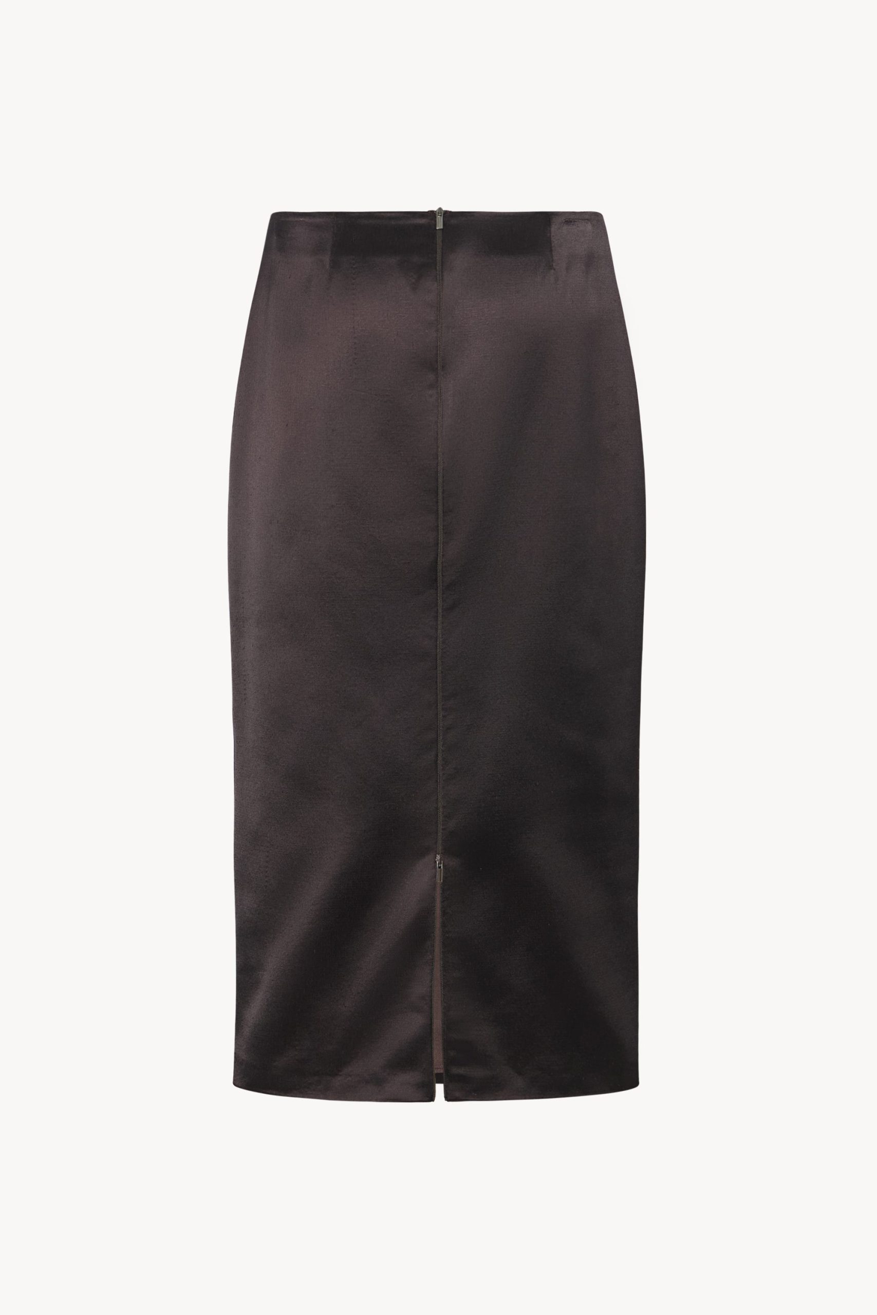 Calf-length pencil skirt in heavyweight silk satin with double-faced construction and zipped center back detail.