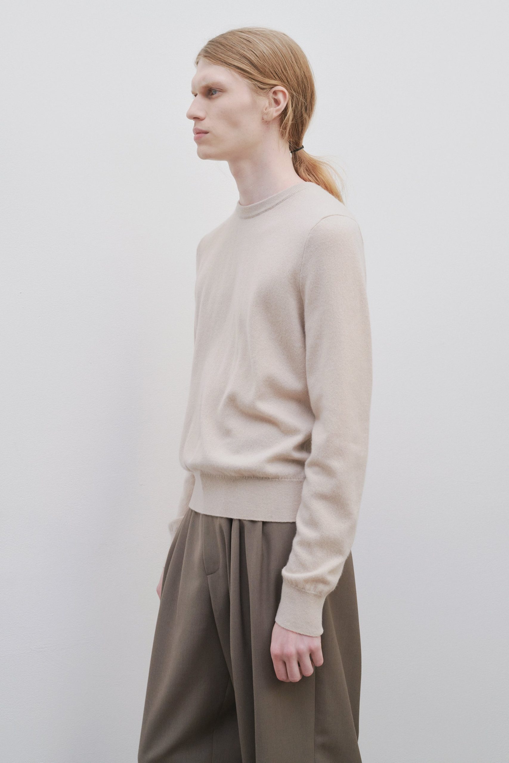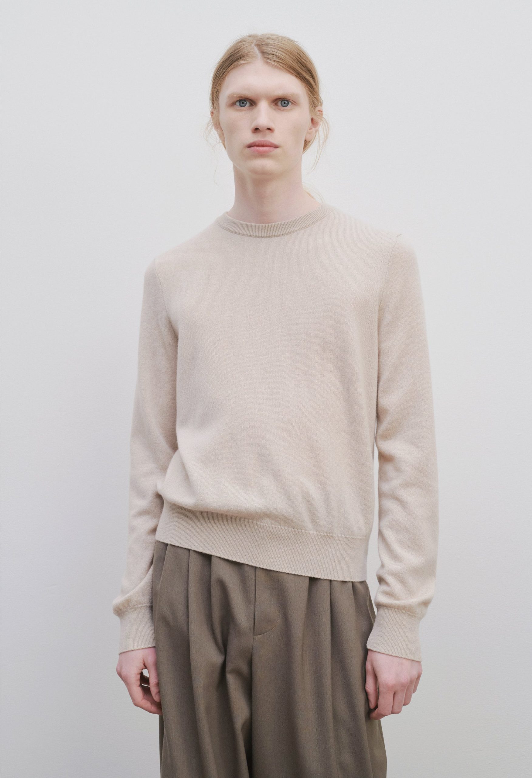 Slim-fit crewneck sweater in two-ply cashmere with ribbed neckline. cuffs and hem. and signature center back detail.