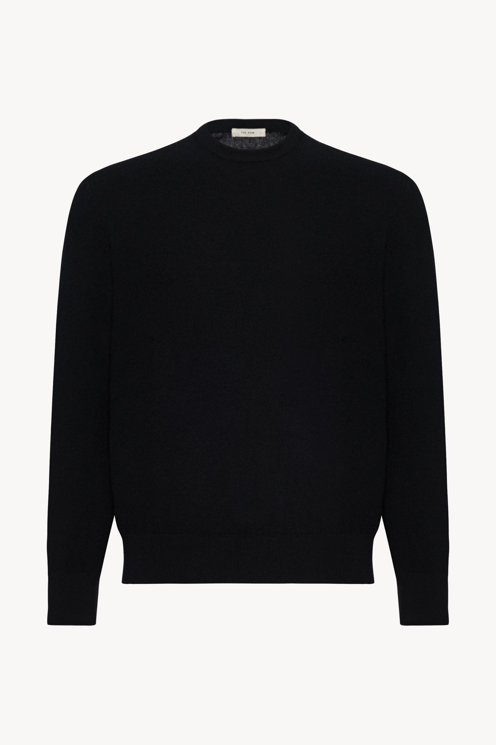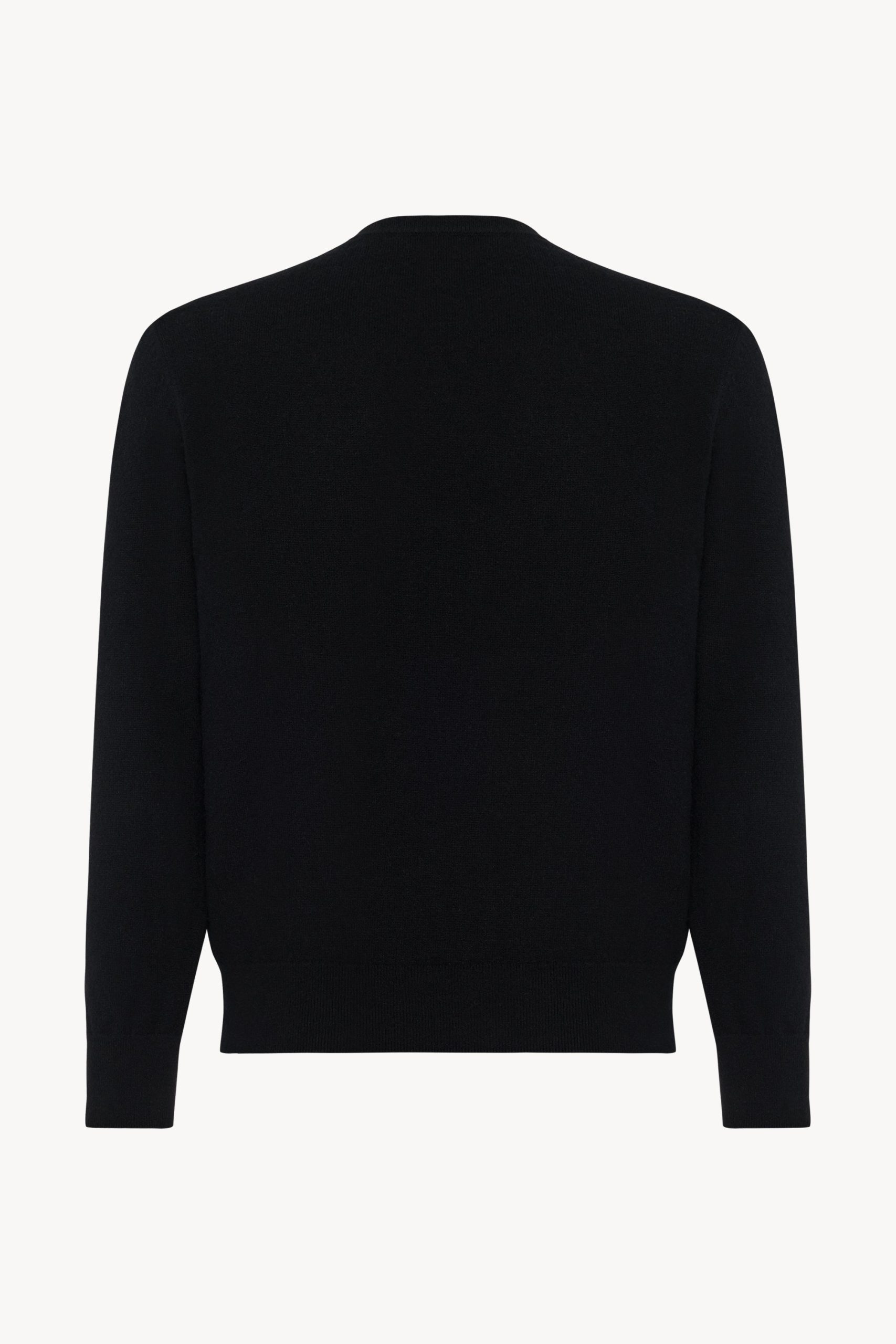Long-sleeved crewneck top in soft cashmere jersey with regular fit. ribbed neckline. cuff and hem. and signature center back detail.