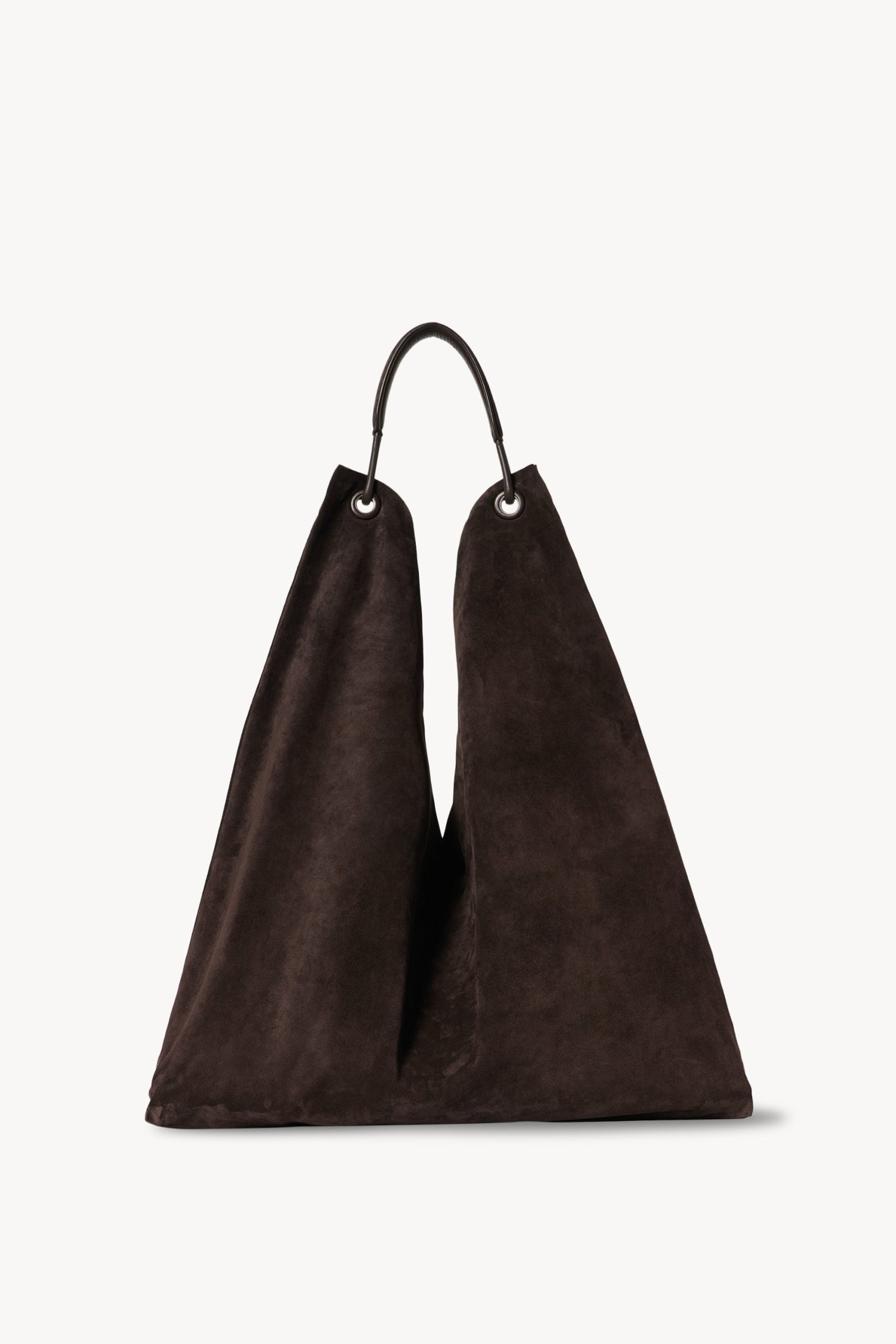 Unstructured bag in soft suede with center stitch detail and draped handle.