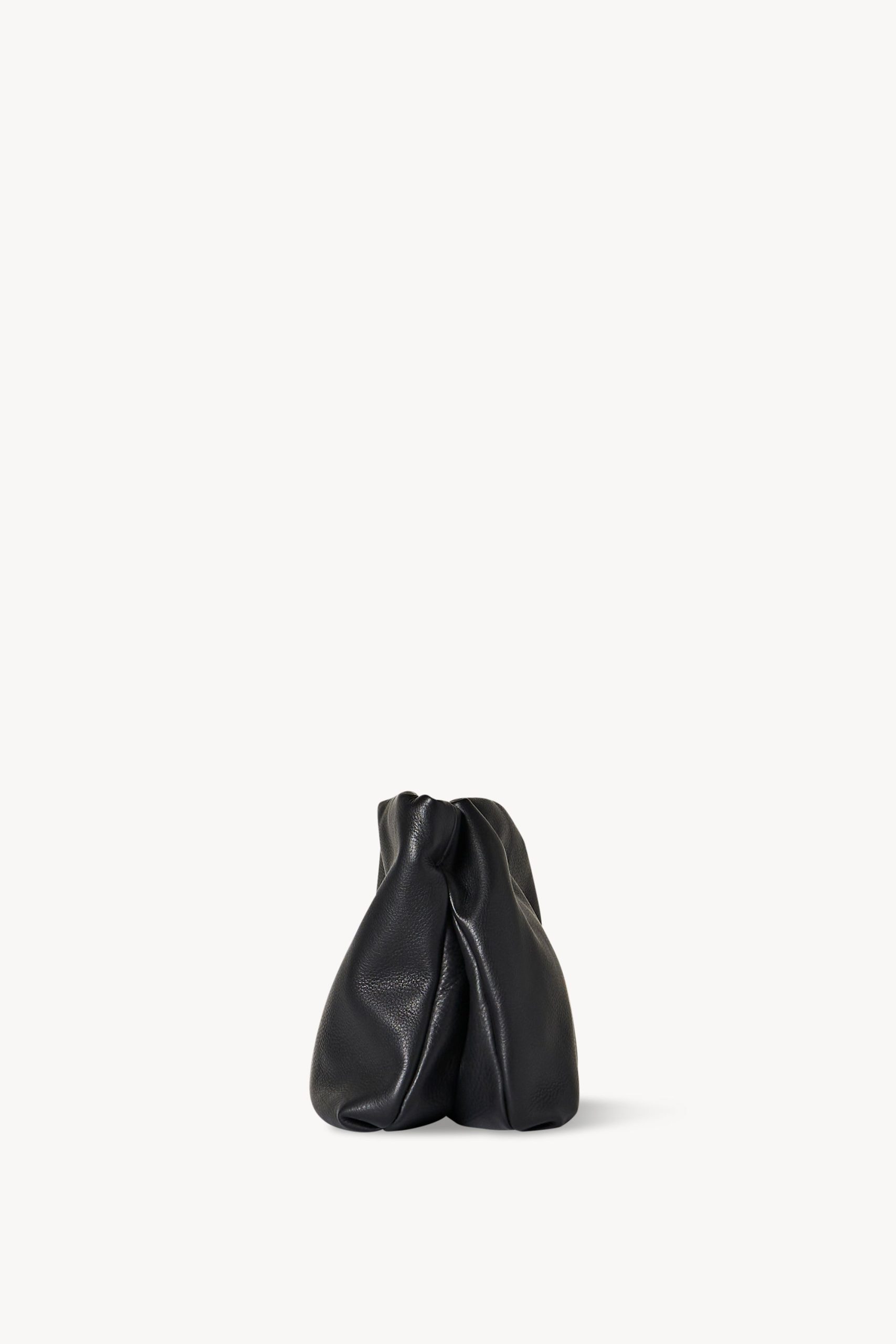 Ruched clutch in finely grained calfskin leather with hidden adjustable shoulder strap and hinged frame closure.