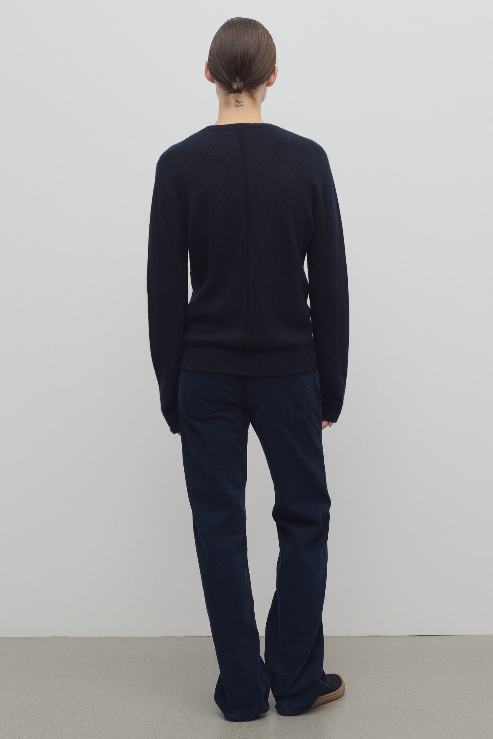 Mid-rise pant in Japanese cotton corduroy with tonal topstitching and classic 5-pocket construction.