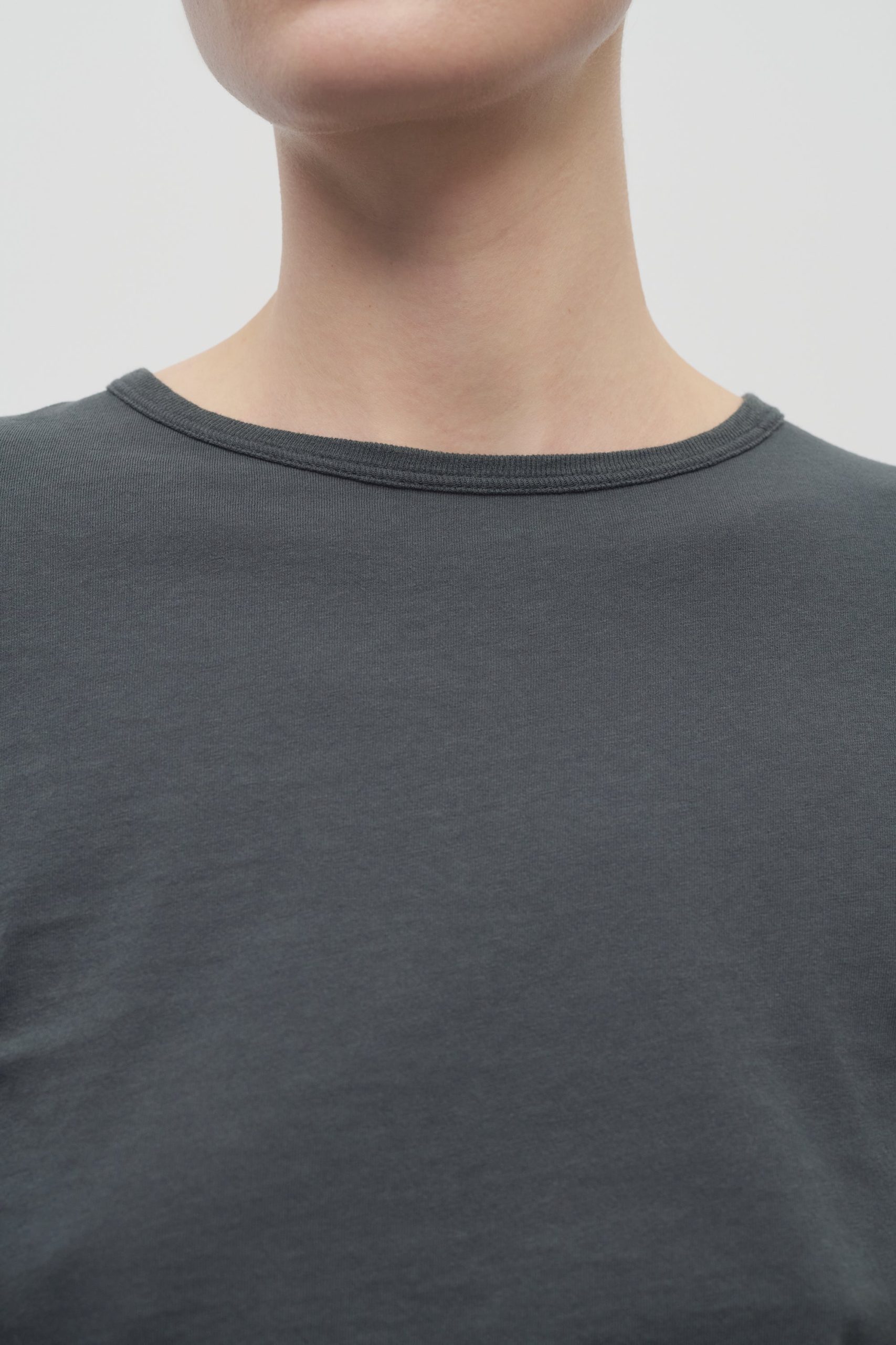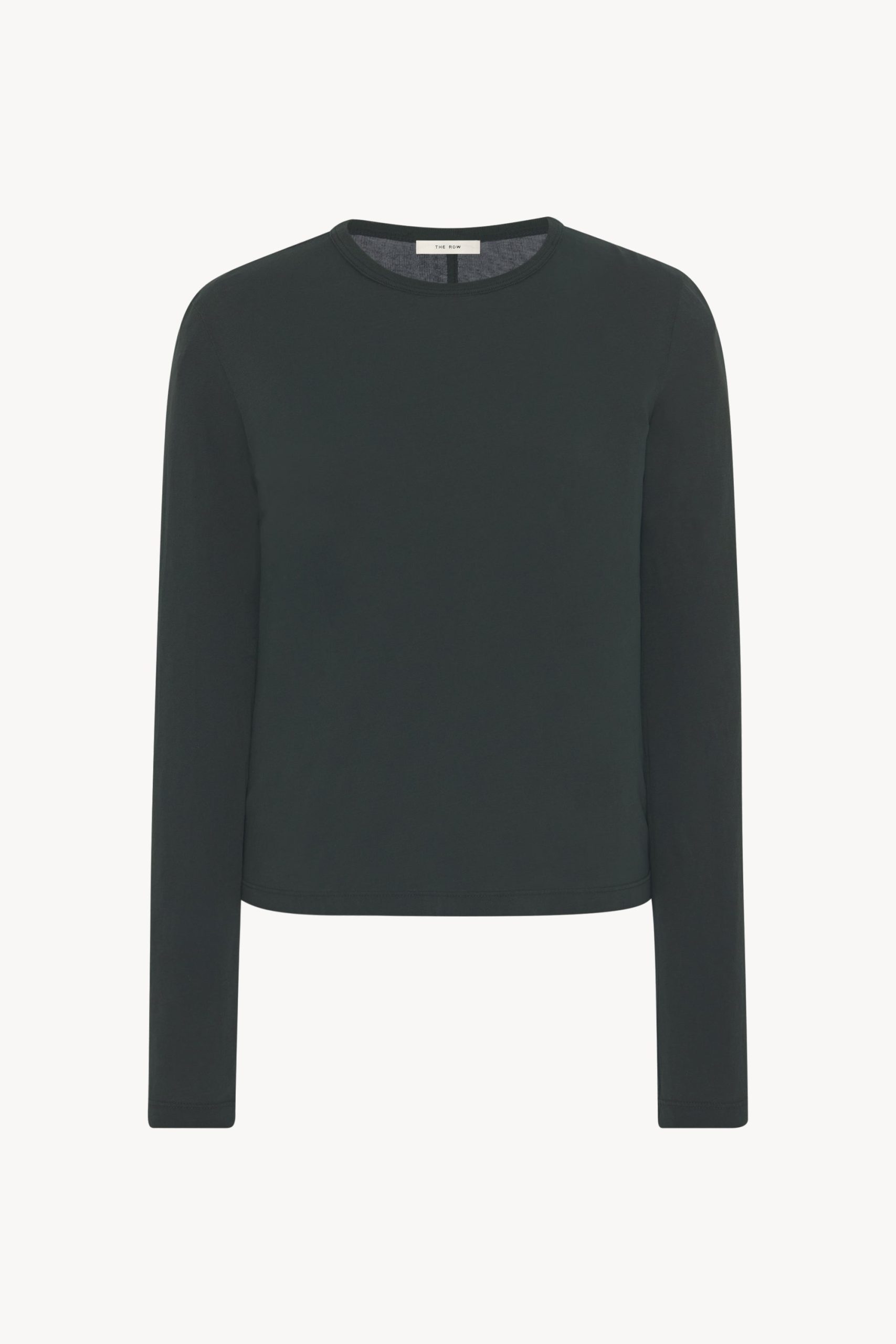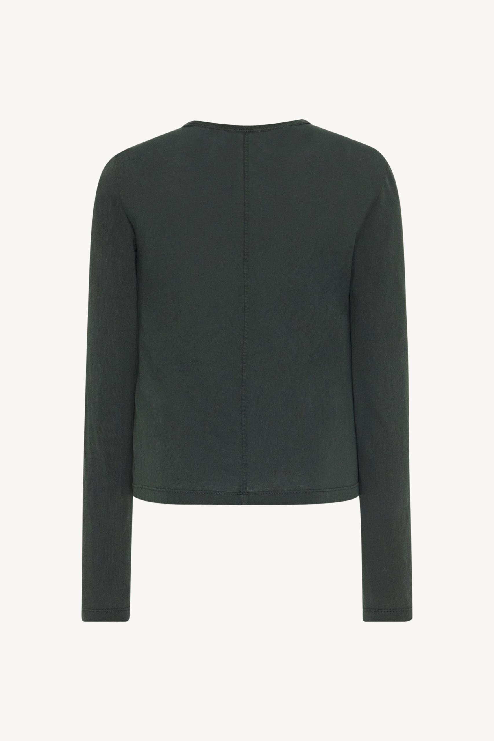 Light long-sleeved top in organic cotton jersey with slim fit. ribbed neckline. and signature center back detail.