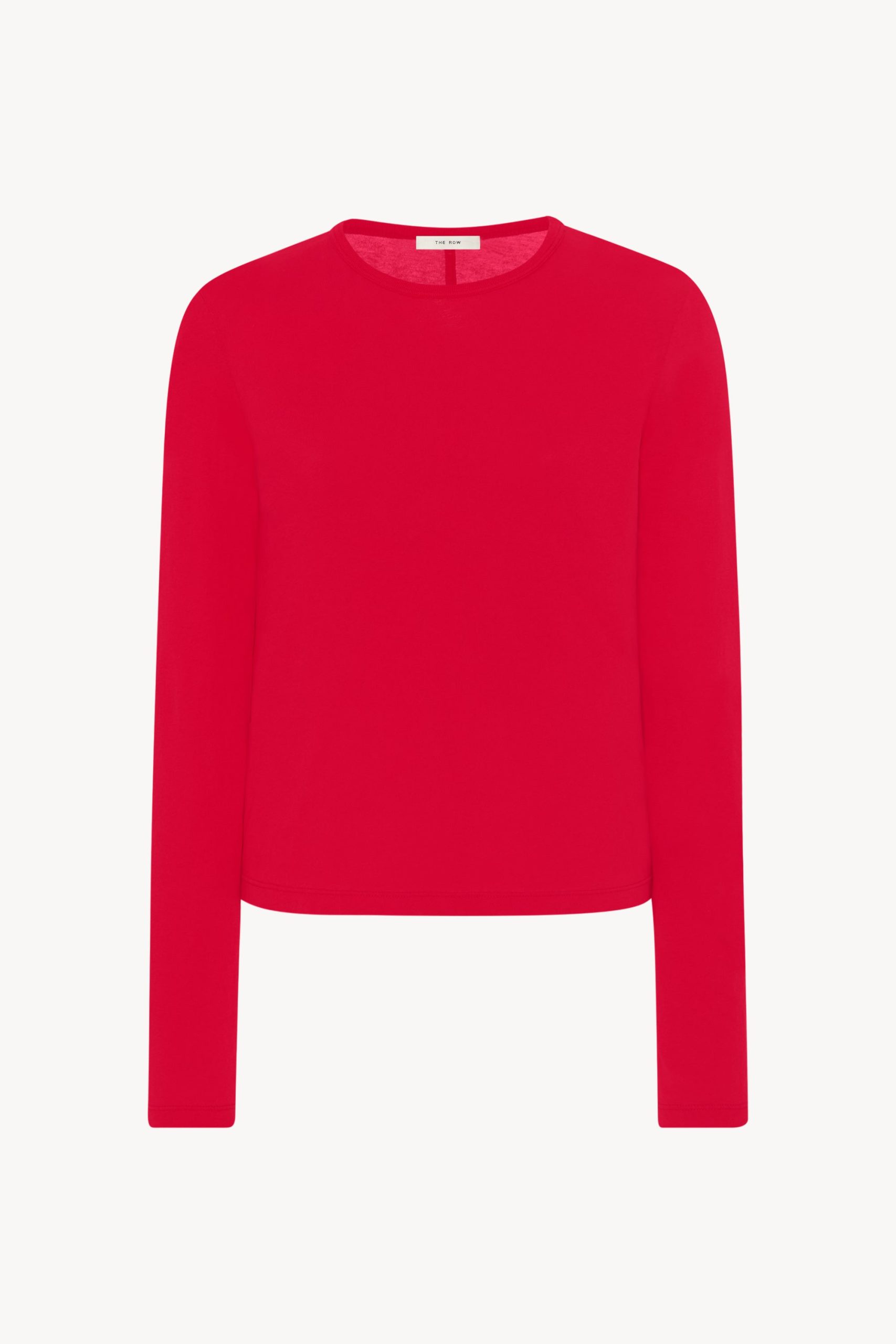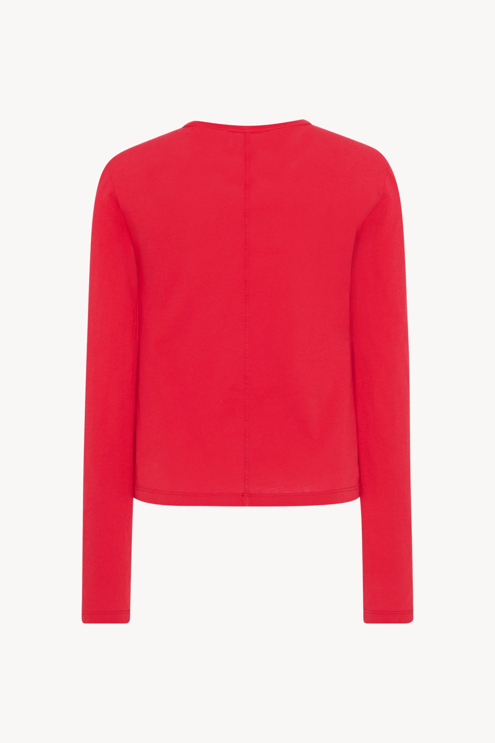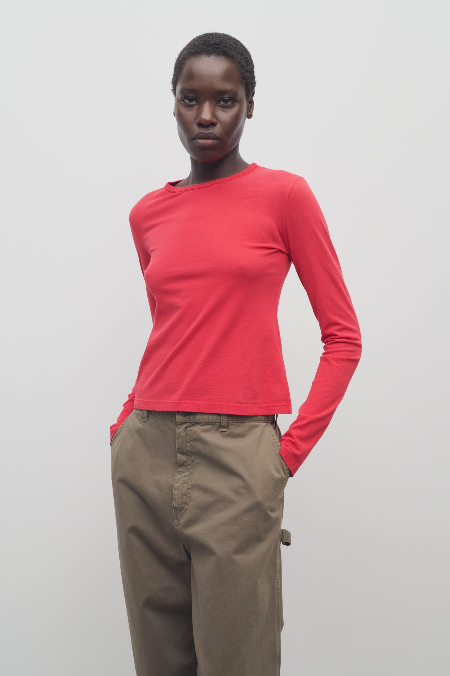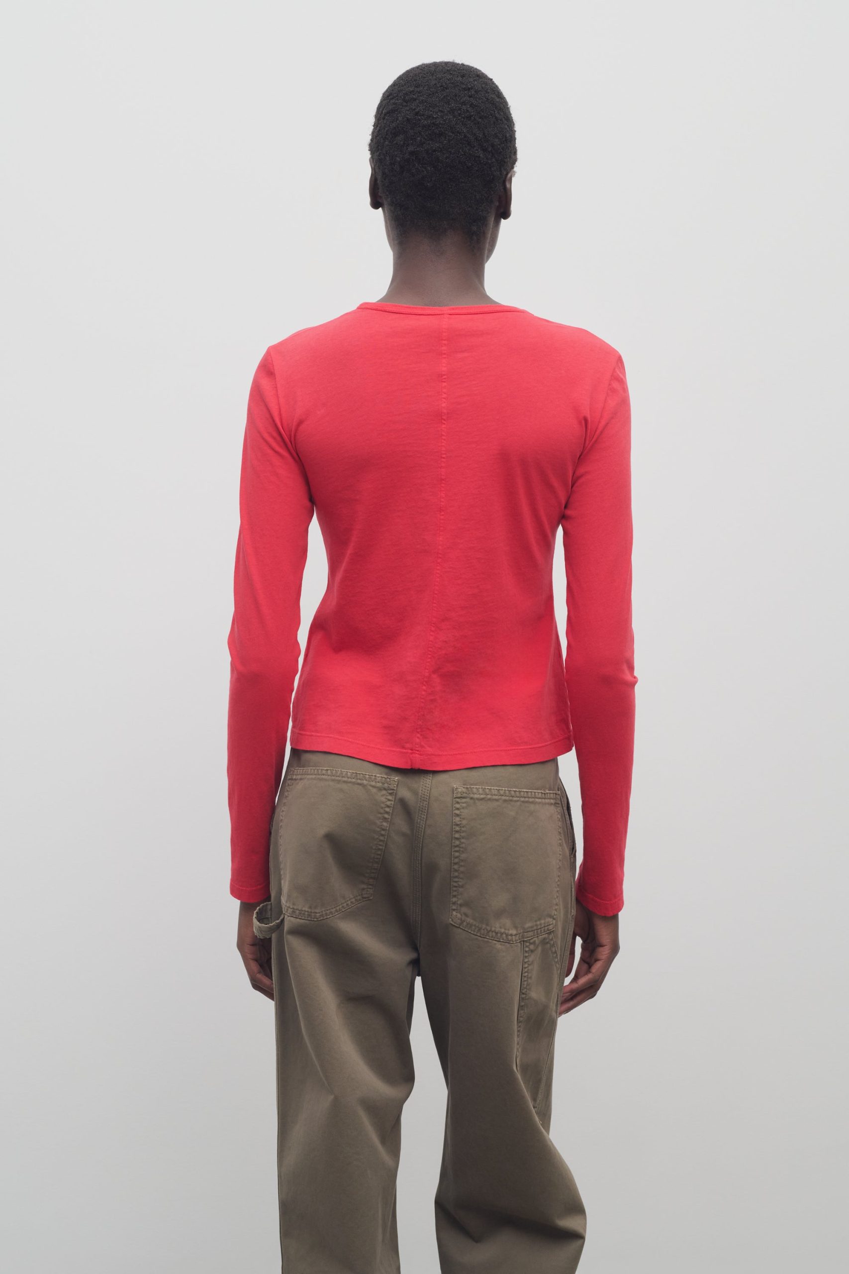 Light long-sleeved top in organic cotton jersey with slim fit. ribbed neckline. and signature center back detail.