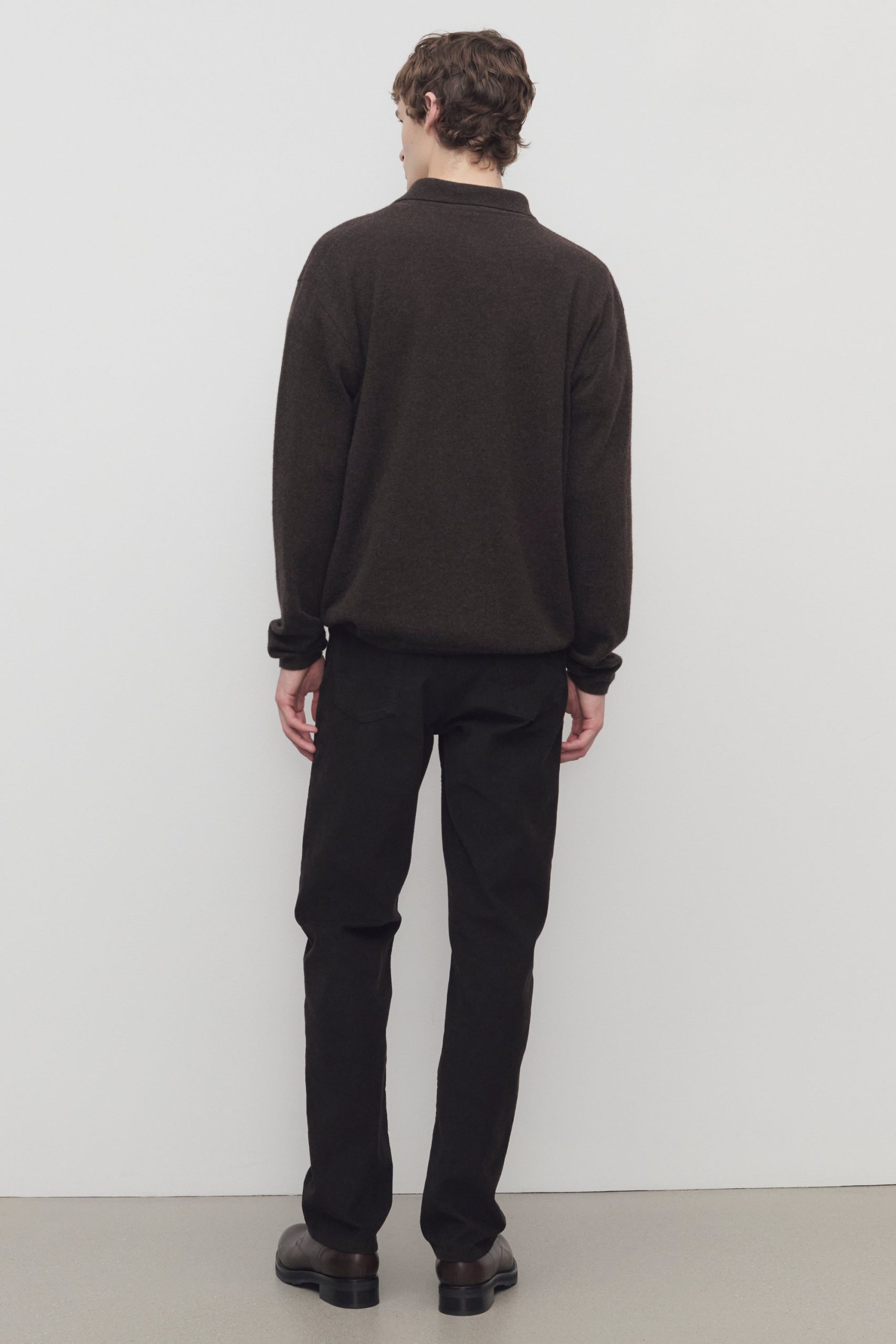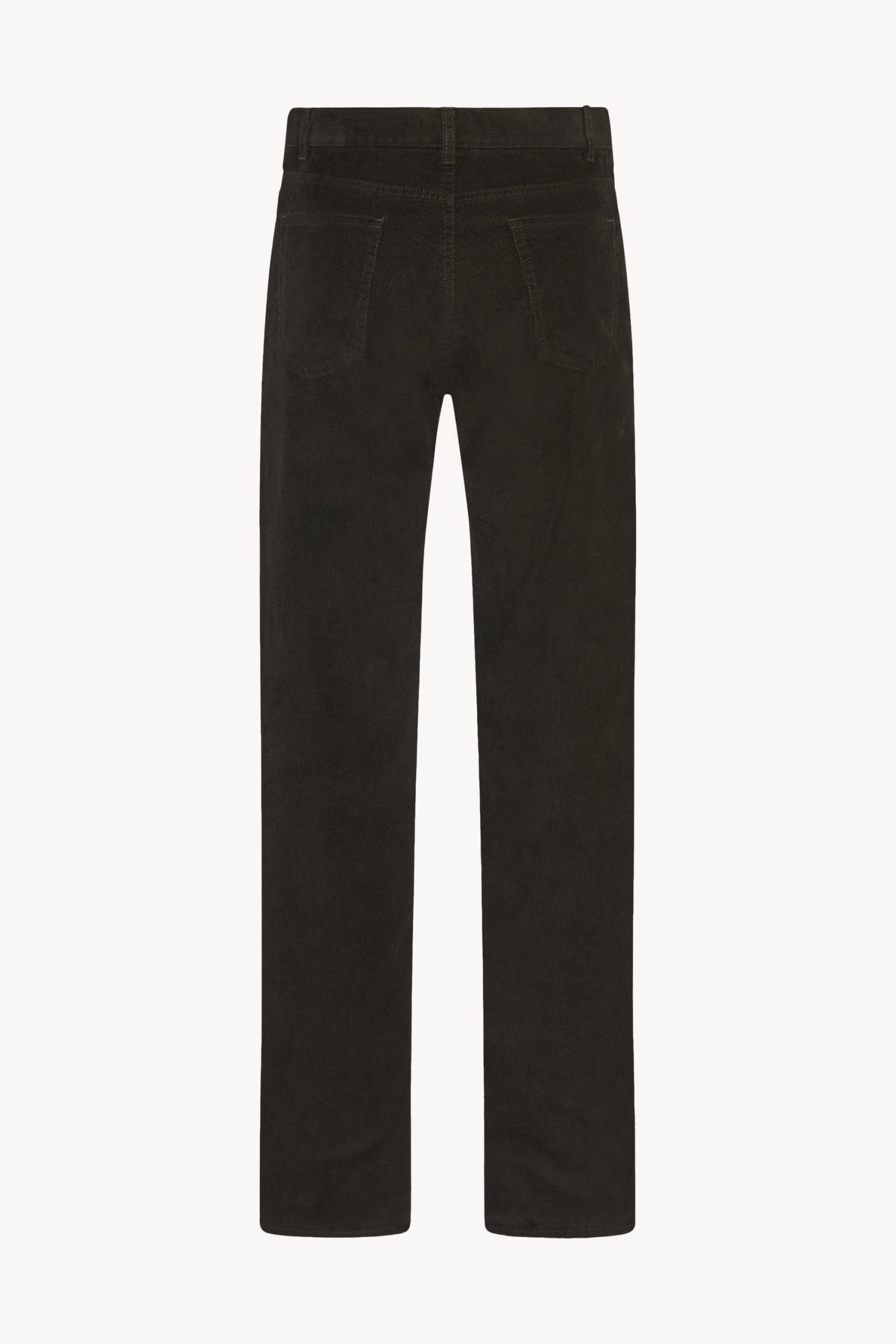 Relaxed mid-rise pant in enzyme-washed stretch cotton corduroy with straight leg. contrast topstitching. and classic 5-pocket construction.