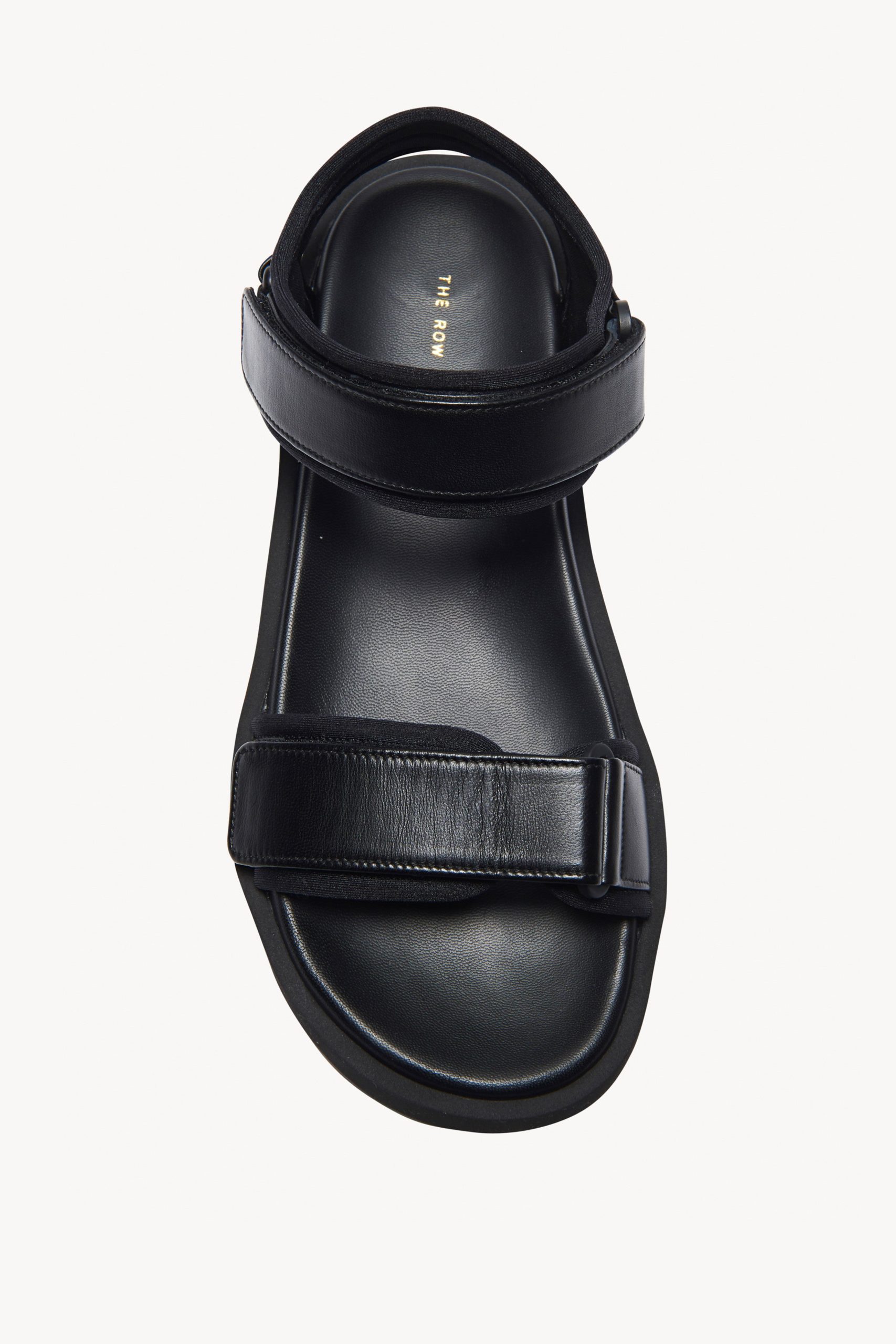 Sport-inspired sandal with neoprene lined smooth nappa leather straps. molded leather footbed and foam midsole.