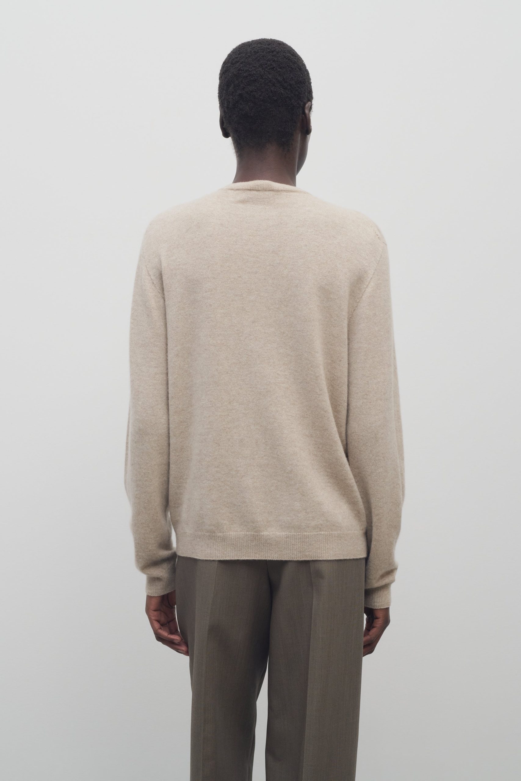 Classic crewneck sweater in soft lightweight cashmere with relaxed fit and ribbed neckline. cuffs. and hem.