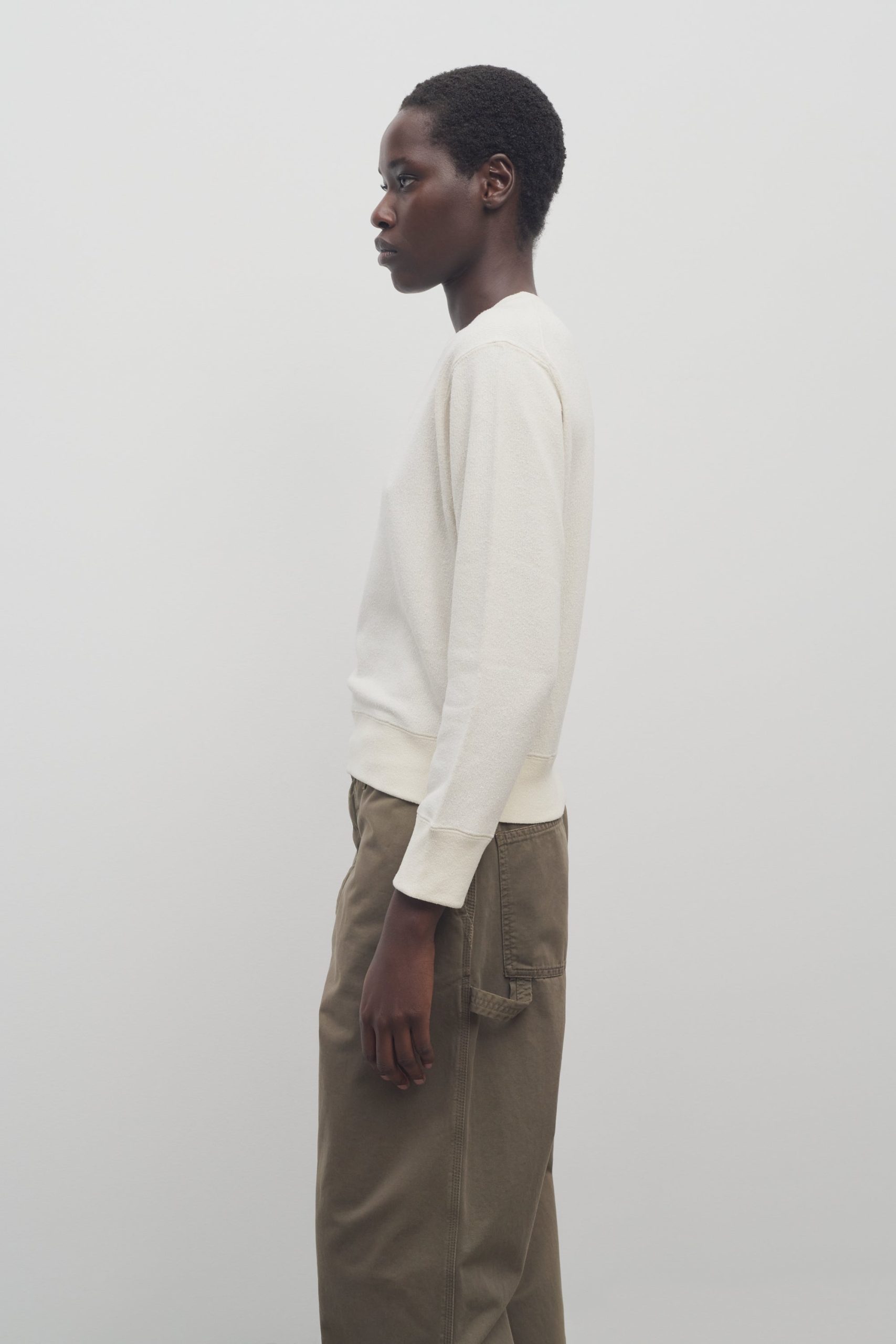 Crewneck sweatshirt in stonewashed silk jersey with regular fit. stitched v-notch detail and ribbed neckline. cuffs. and hem.