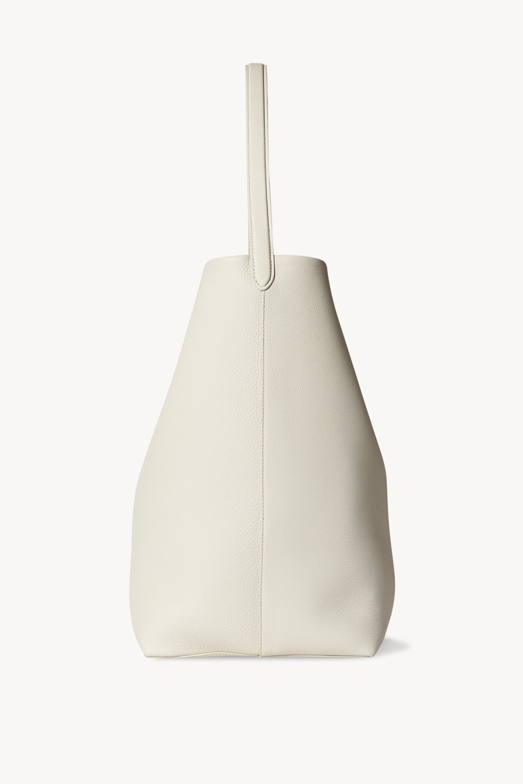 Classic tote bag in grained calfskin leather with interior tie closure and flat handle.