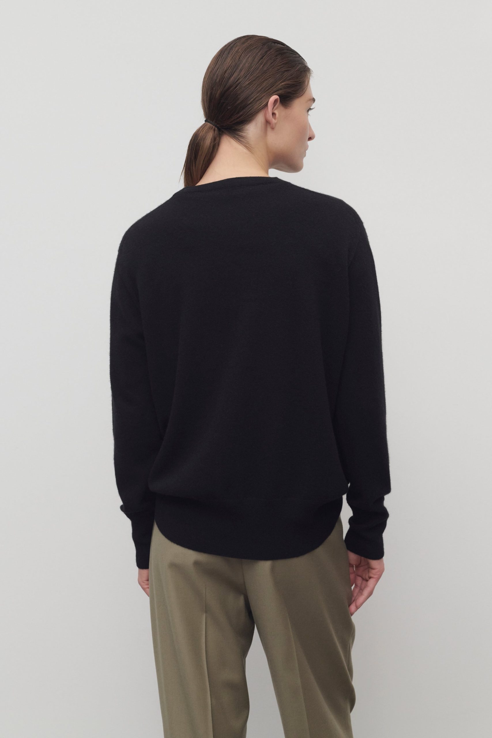 Classic crewneck sweater in soft cashmere with relaxed fit. seamless construction. and ribbed neckline. cuffs. and hem.