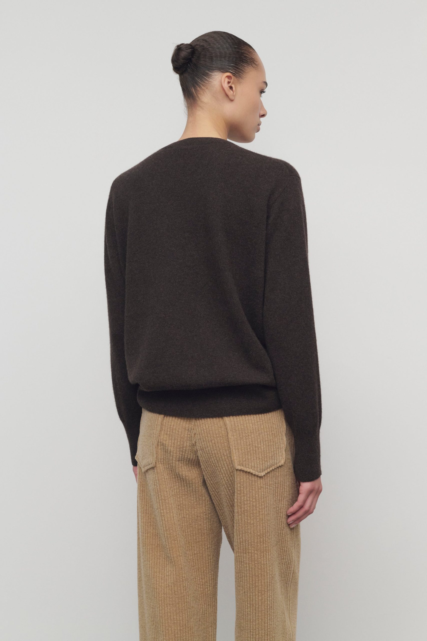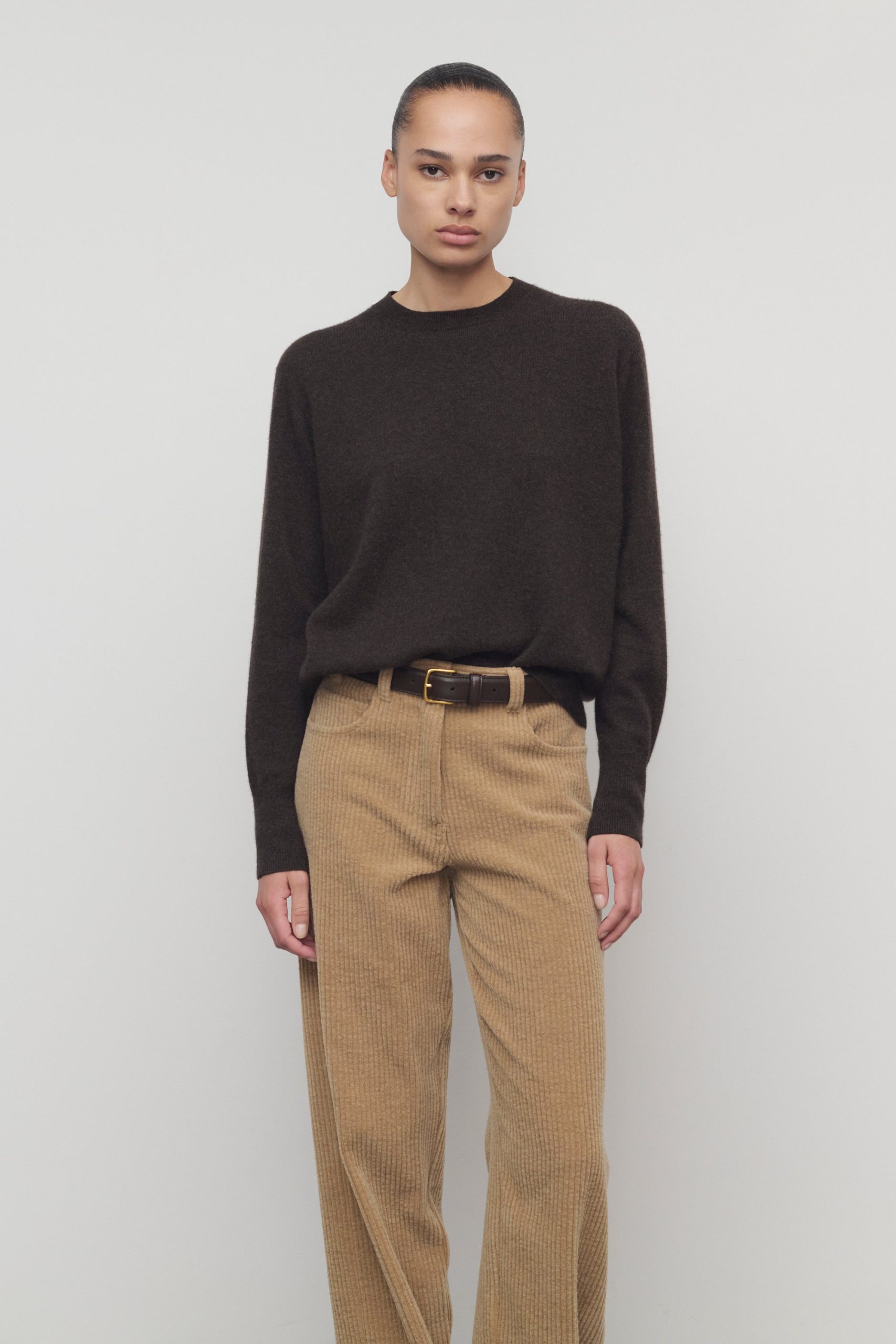 Classic crewneck sweater in soft cashmere with relaxed fit. seamless construction. and ribbed neckline. cuffs. and hem.