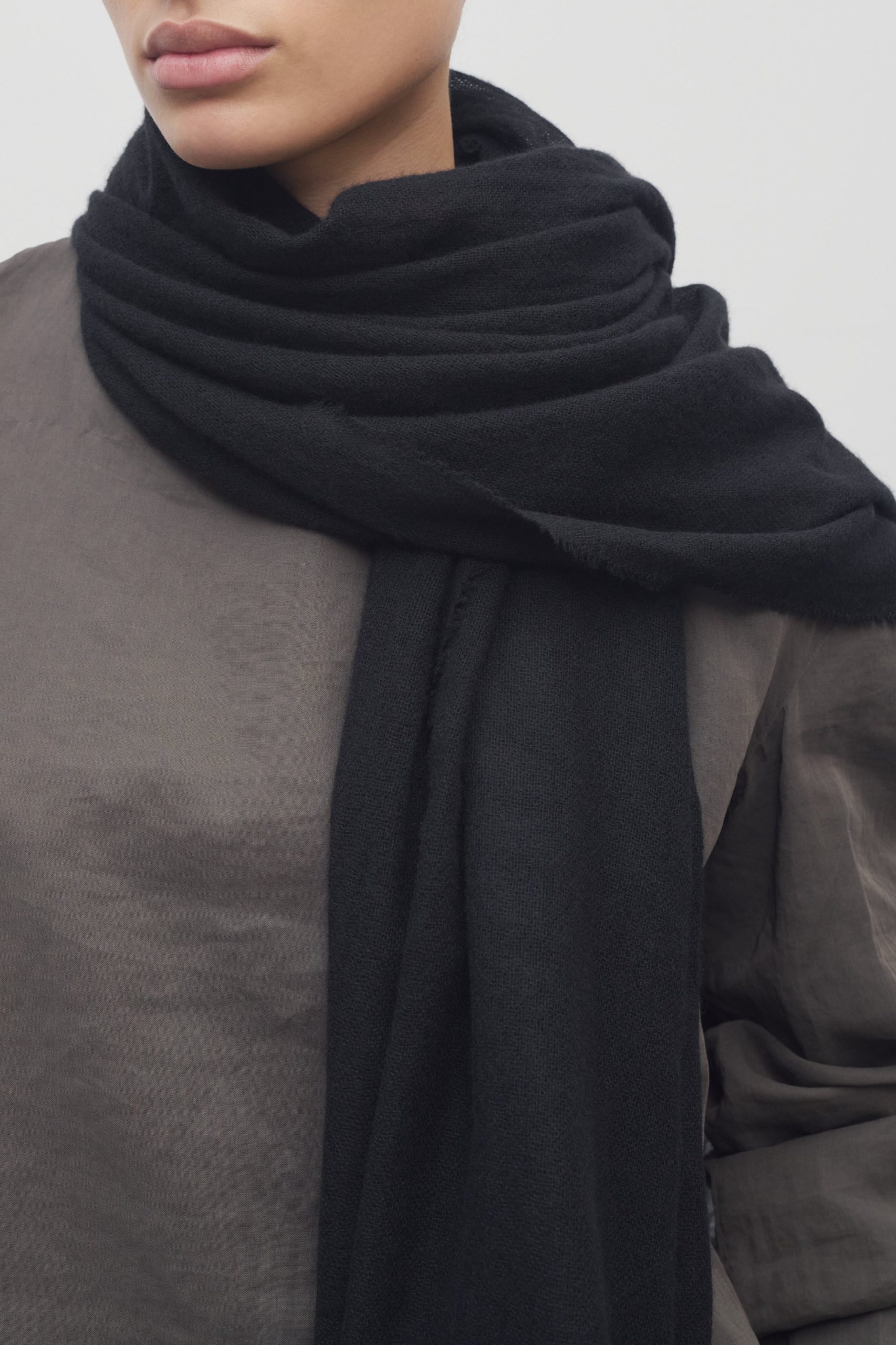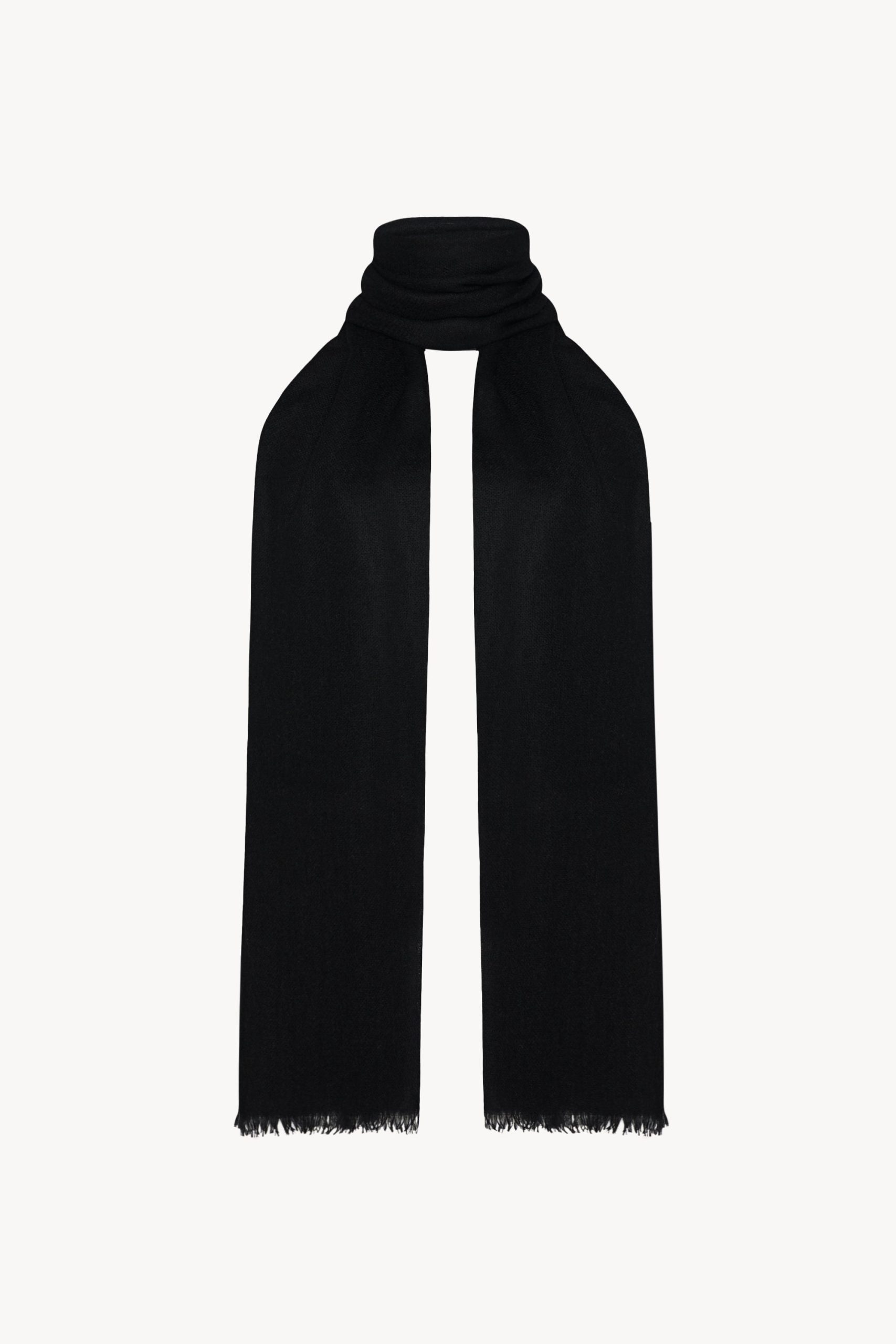 Delicate scarf in lightweight cashmere gauze with basket-weave texture and raw edge finish.