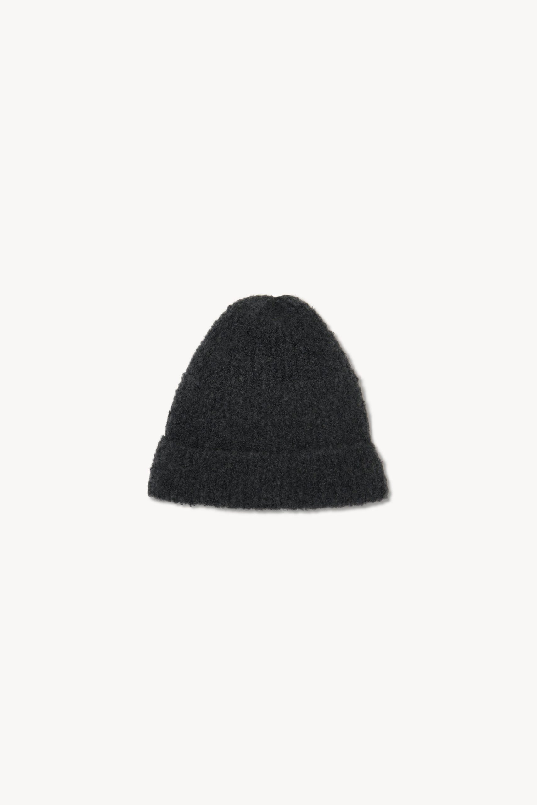 Fitted beanie in textured alpaca and cashmere boucl?? with ribbed construction and clean finish.