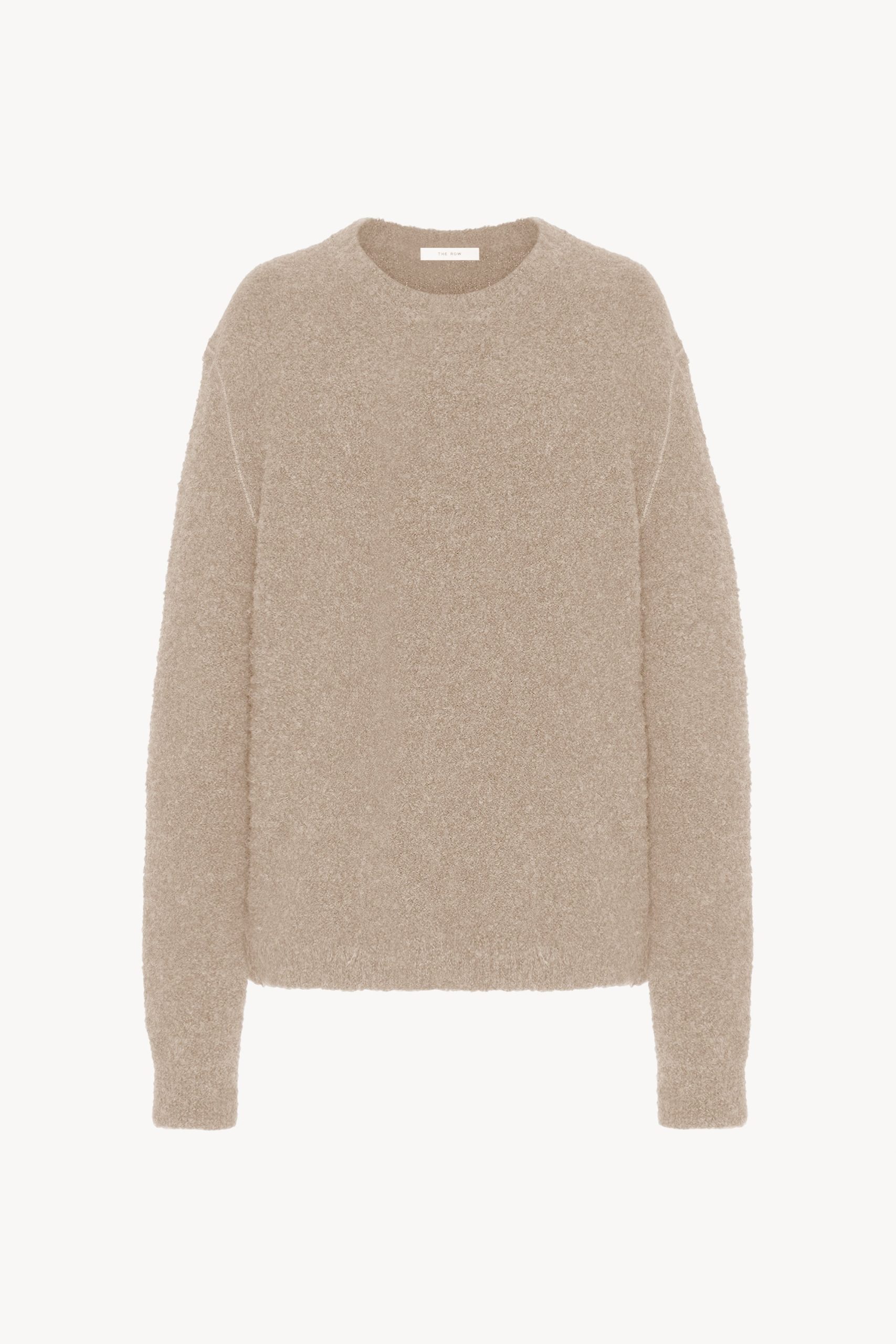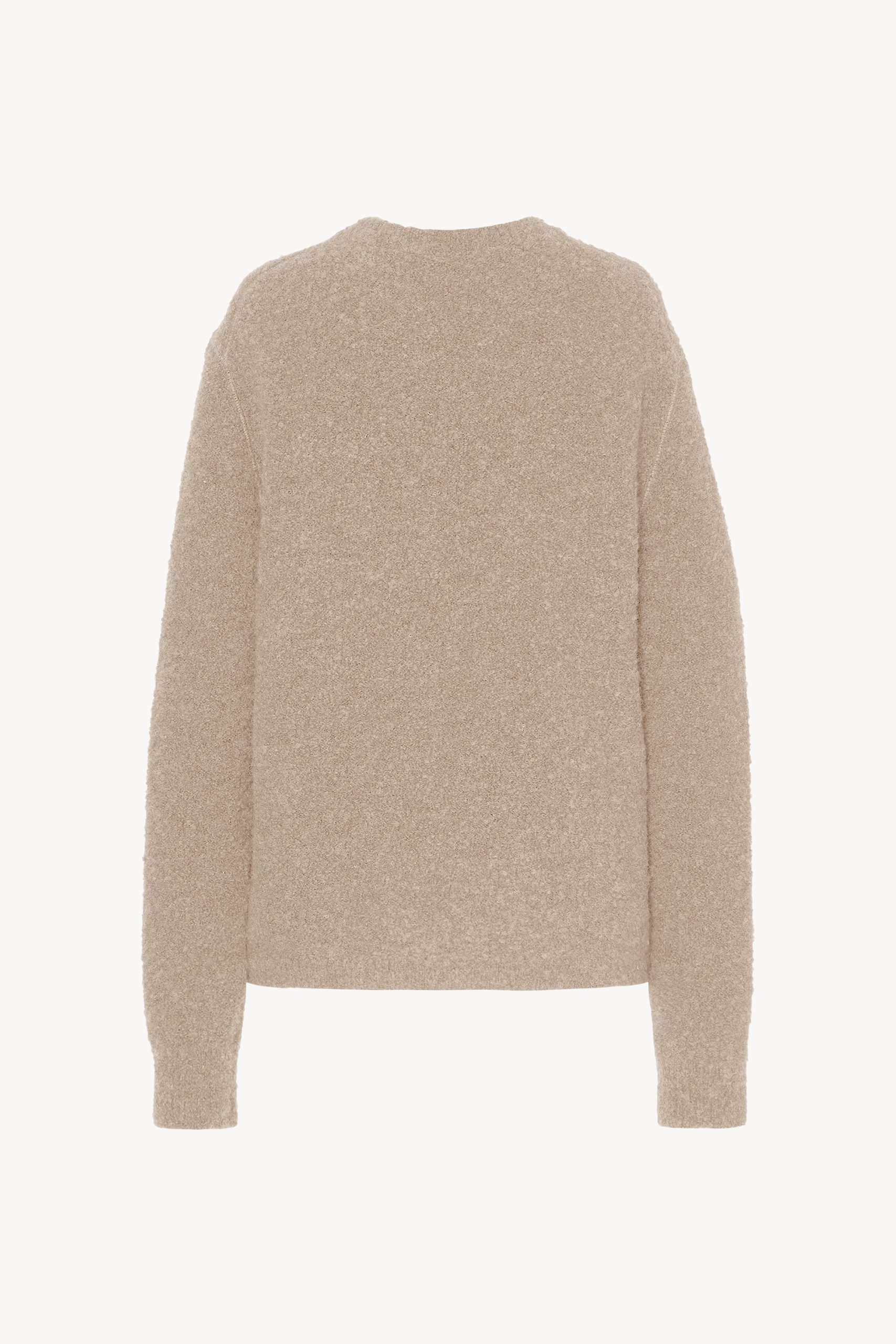 Relaxed crewneck sweater in textured alpaca and cashmere boucl?? with topstitched armholes and ribbed neckline. cuffs. and hem.