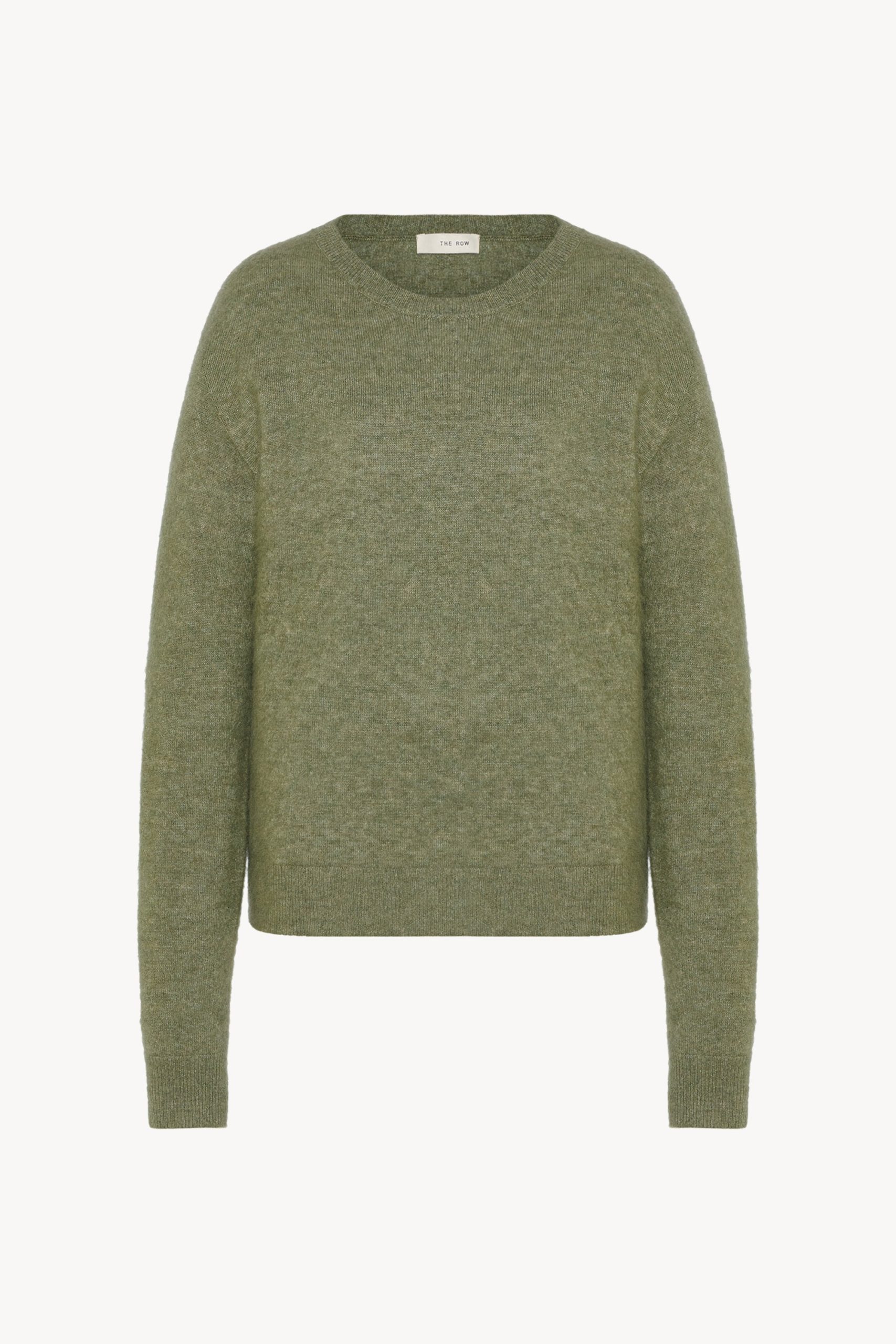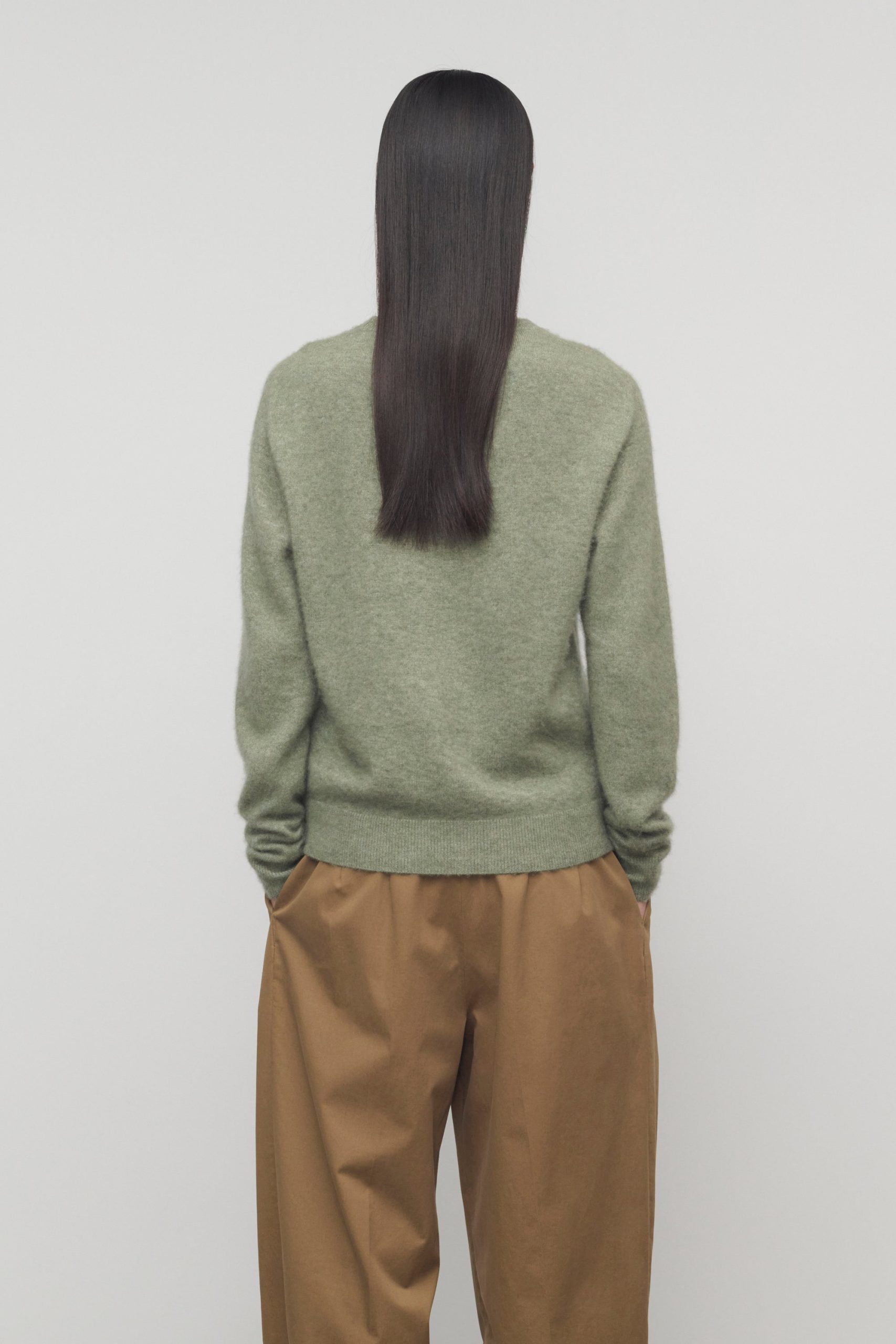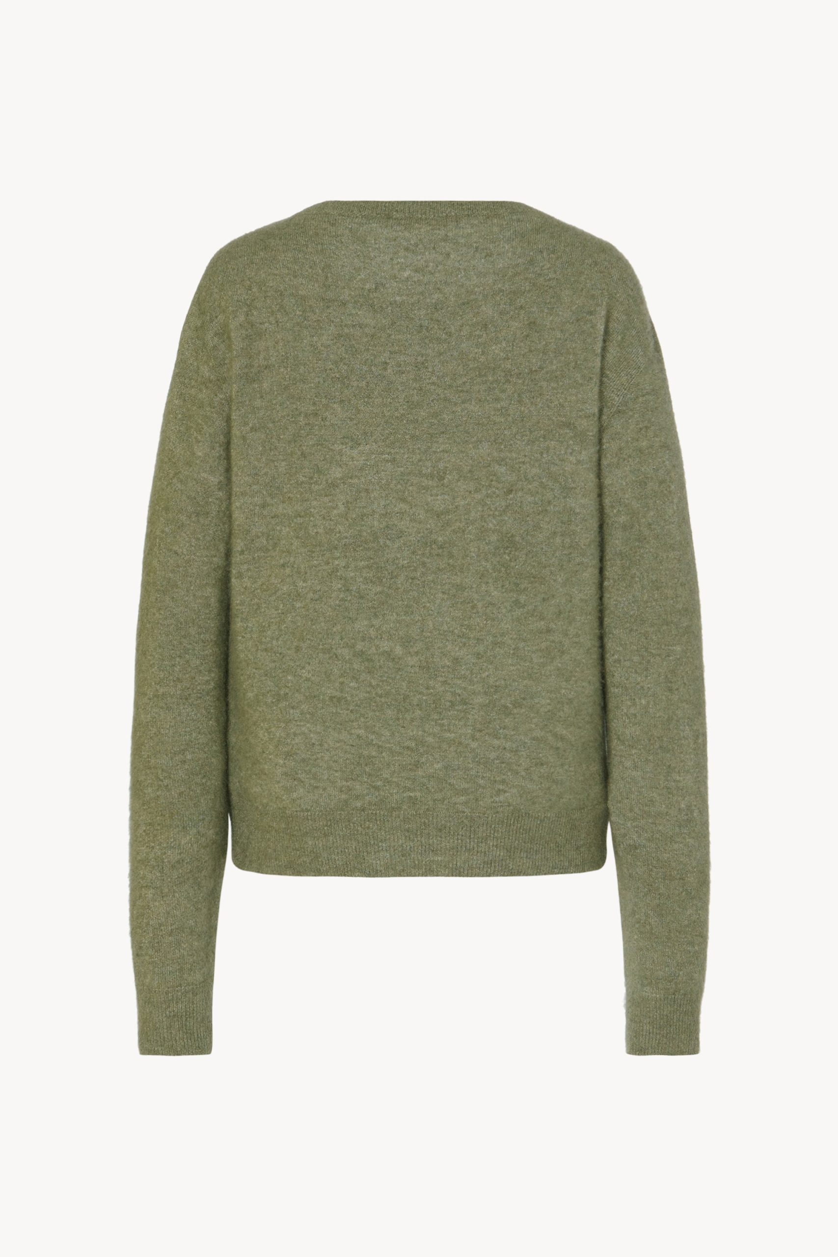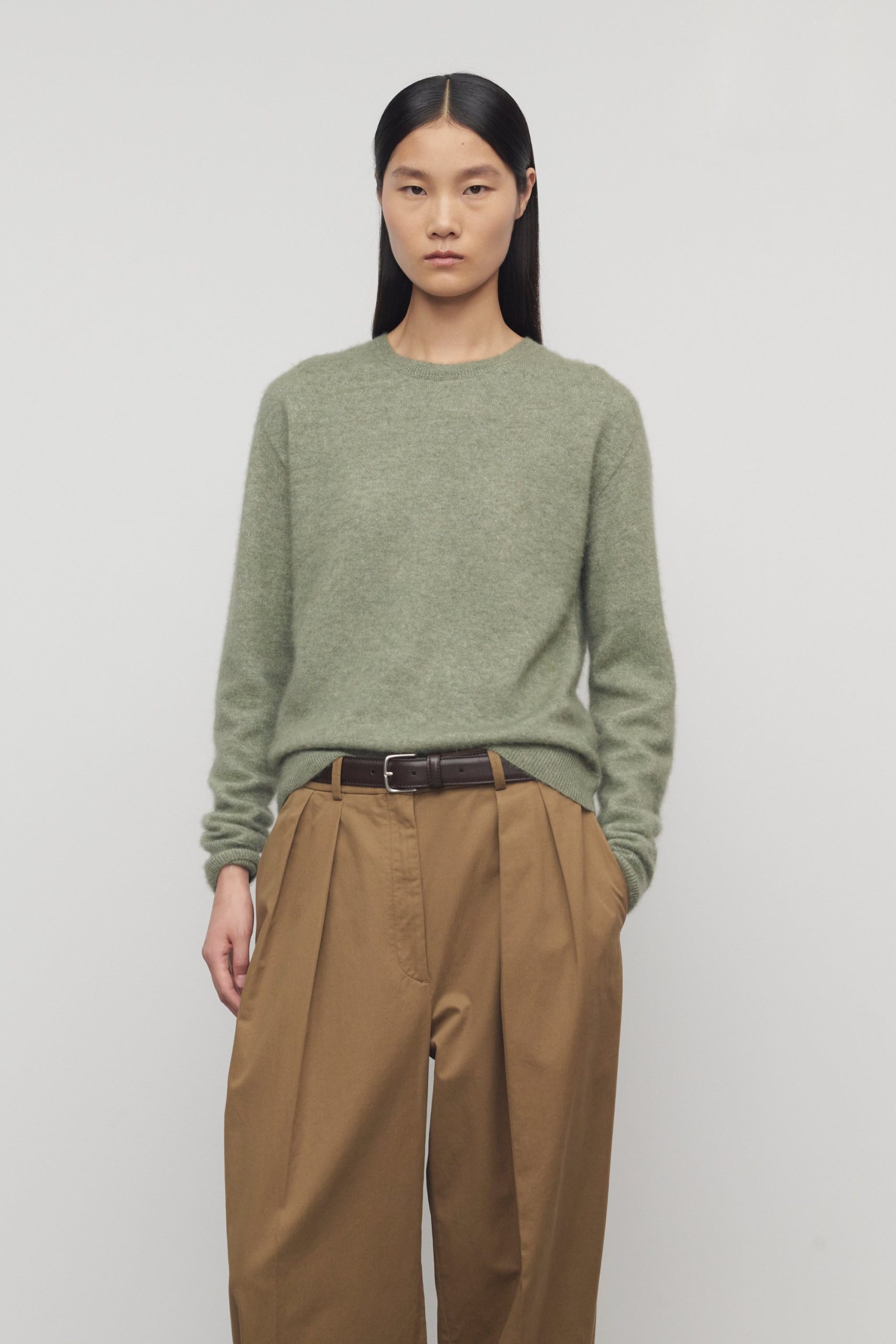 Classic crewneck sweater in textured cashmere and silk with regular fit and ribbed neckline. cuffs. and hem.