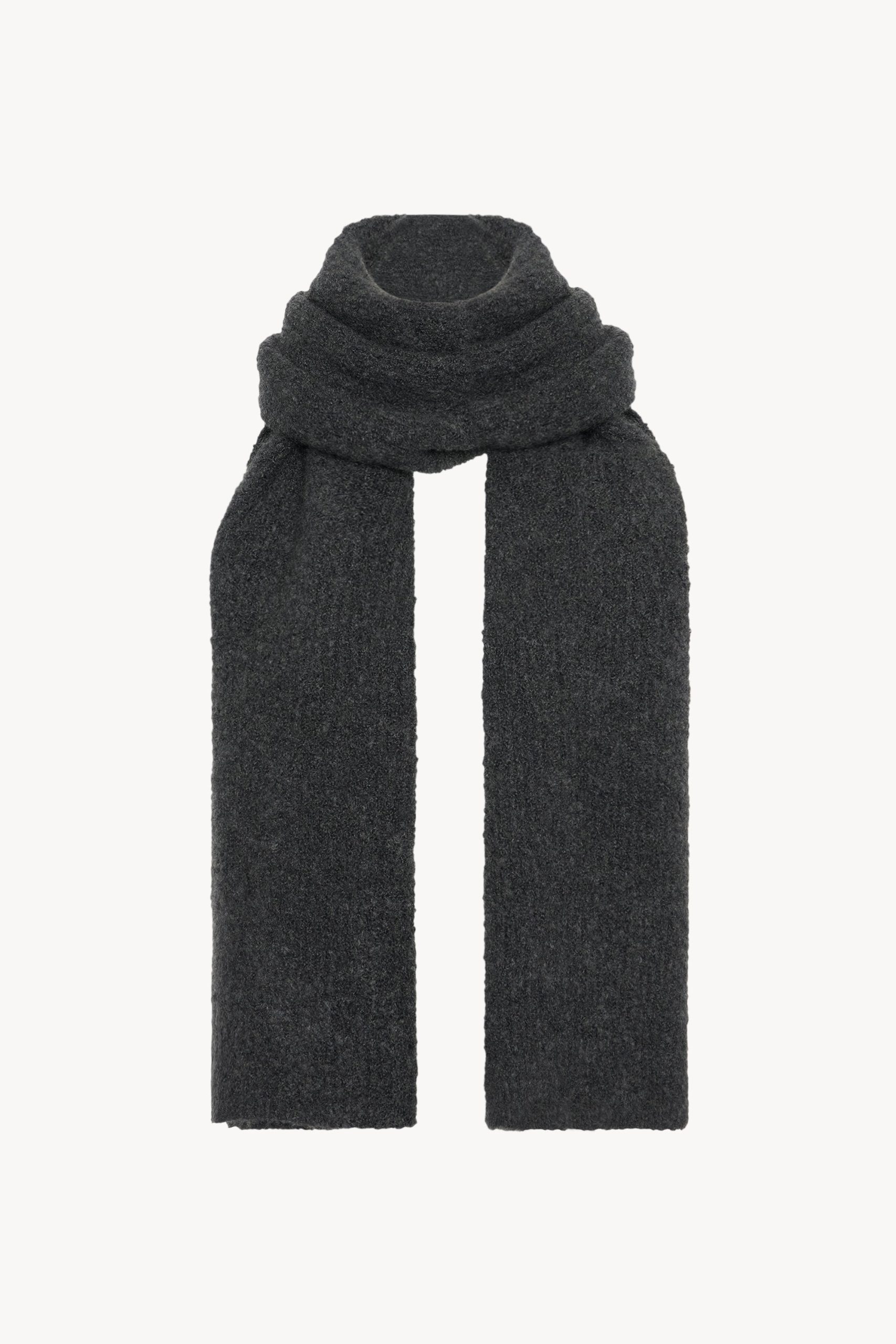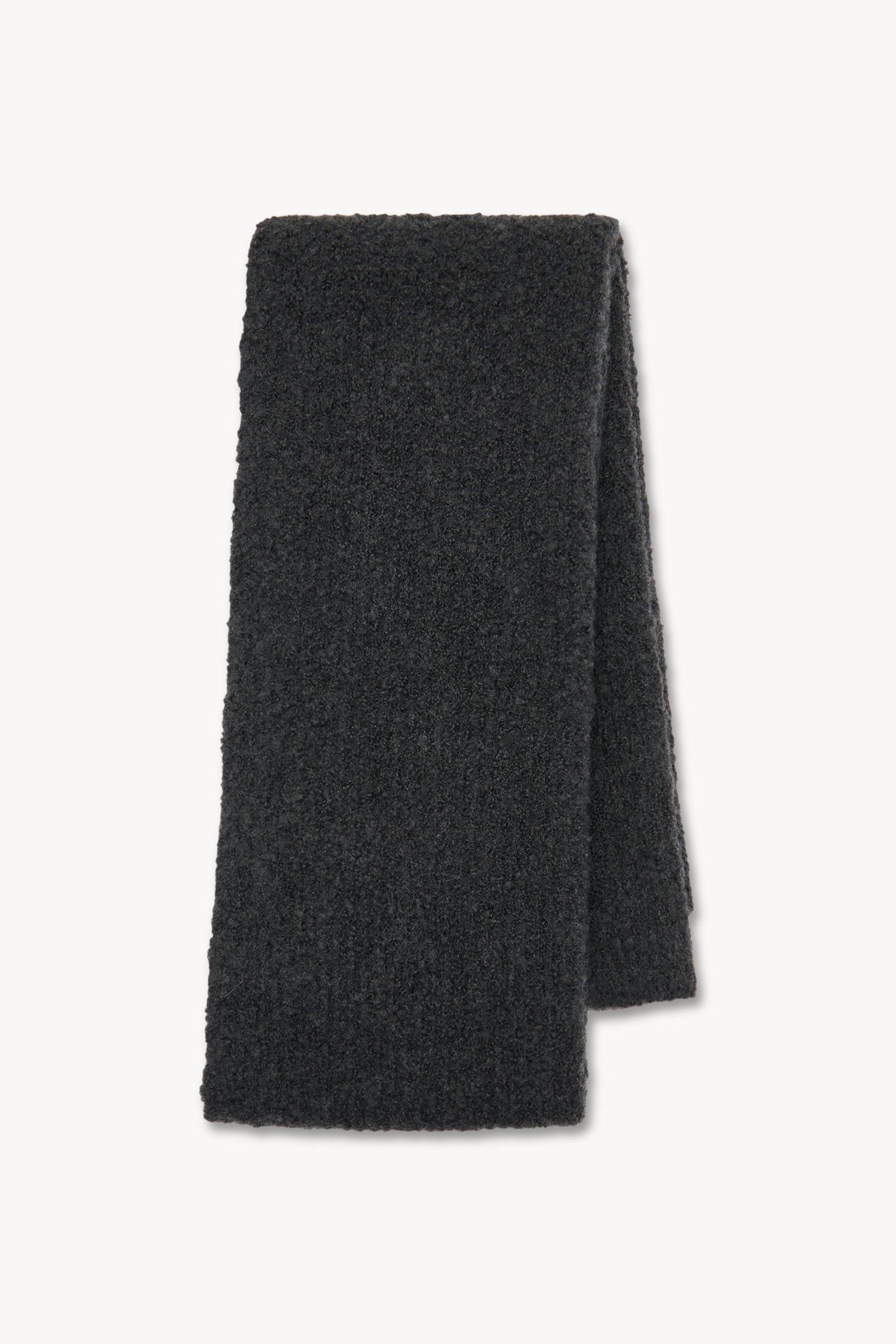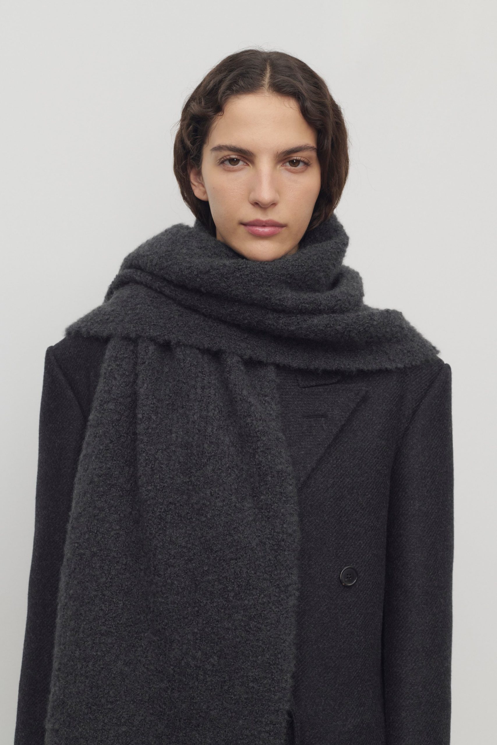 Extra-long knit scarf in textured alpaca and cashmere bouclé with clean edge finish.