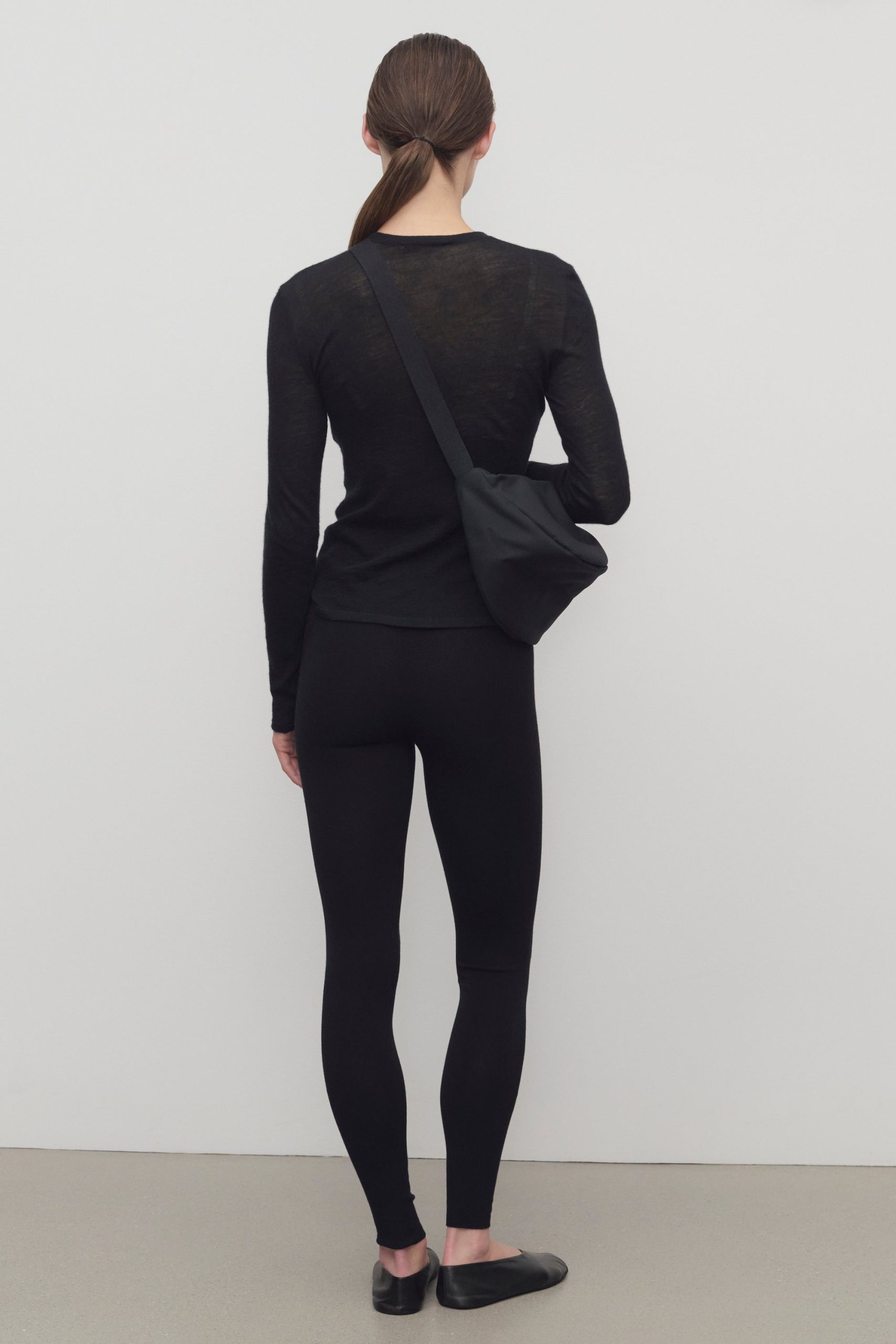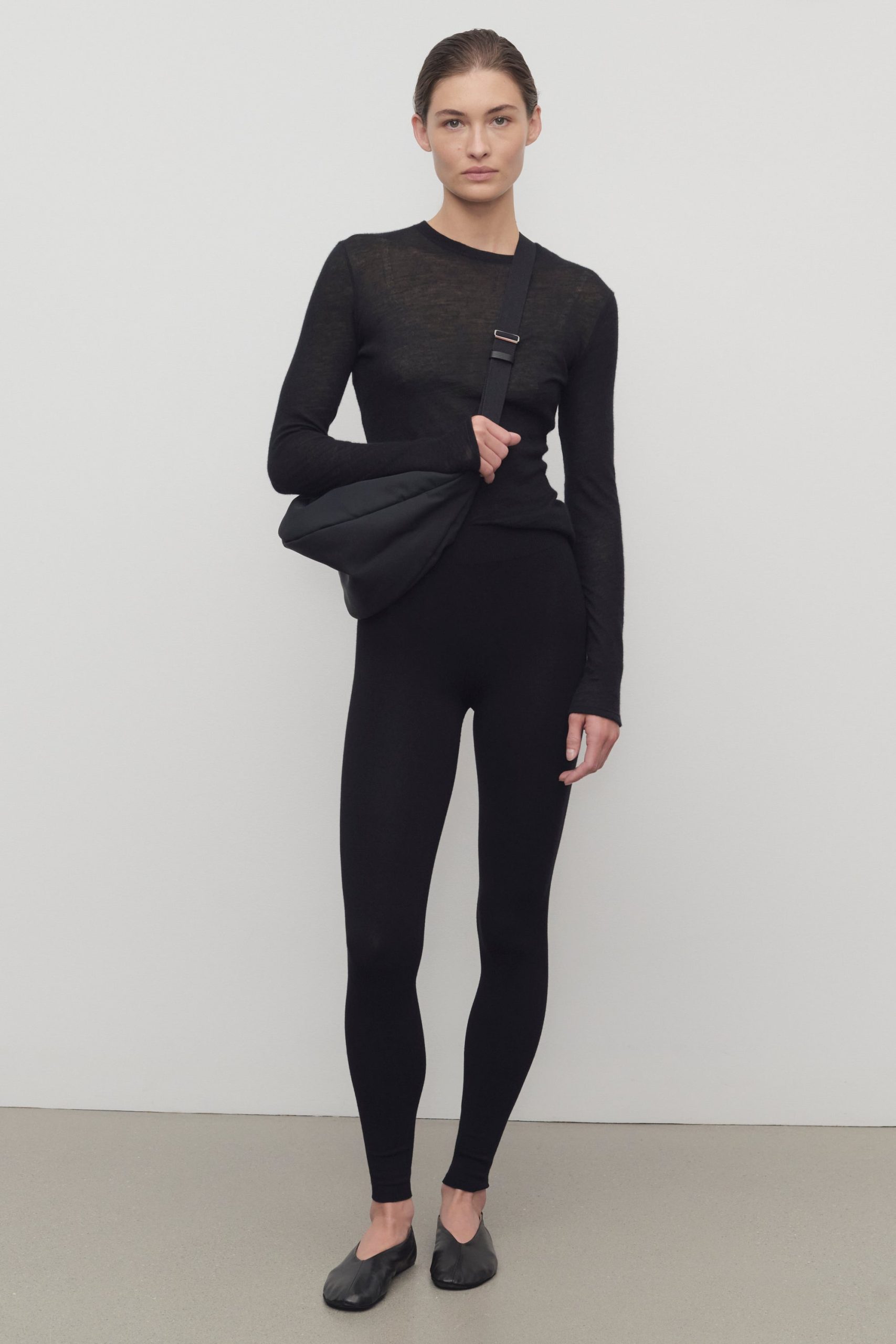 Seamless pull-on legging in ultrasoft stretch jersey with ribbed waistband and cuffs.