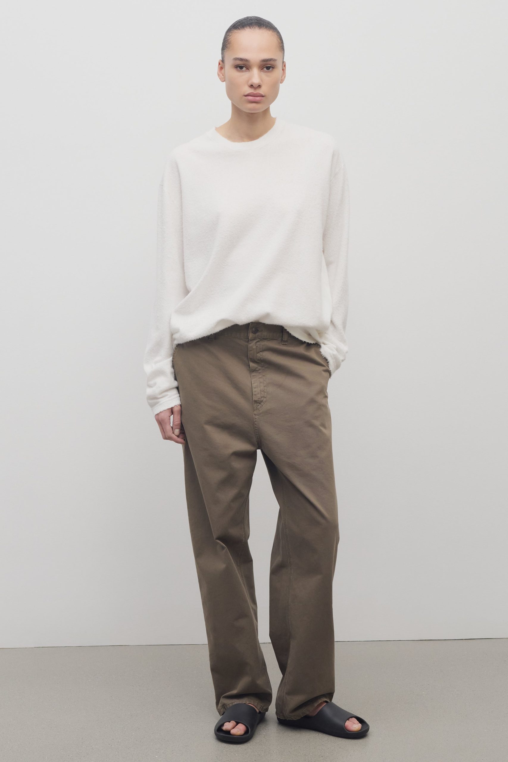 Mid-rise cargo pant in airy cotton gabardine with straight leg. painter’s loop detail. and side slash pockets.