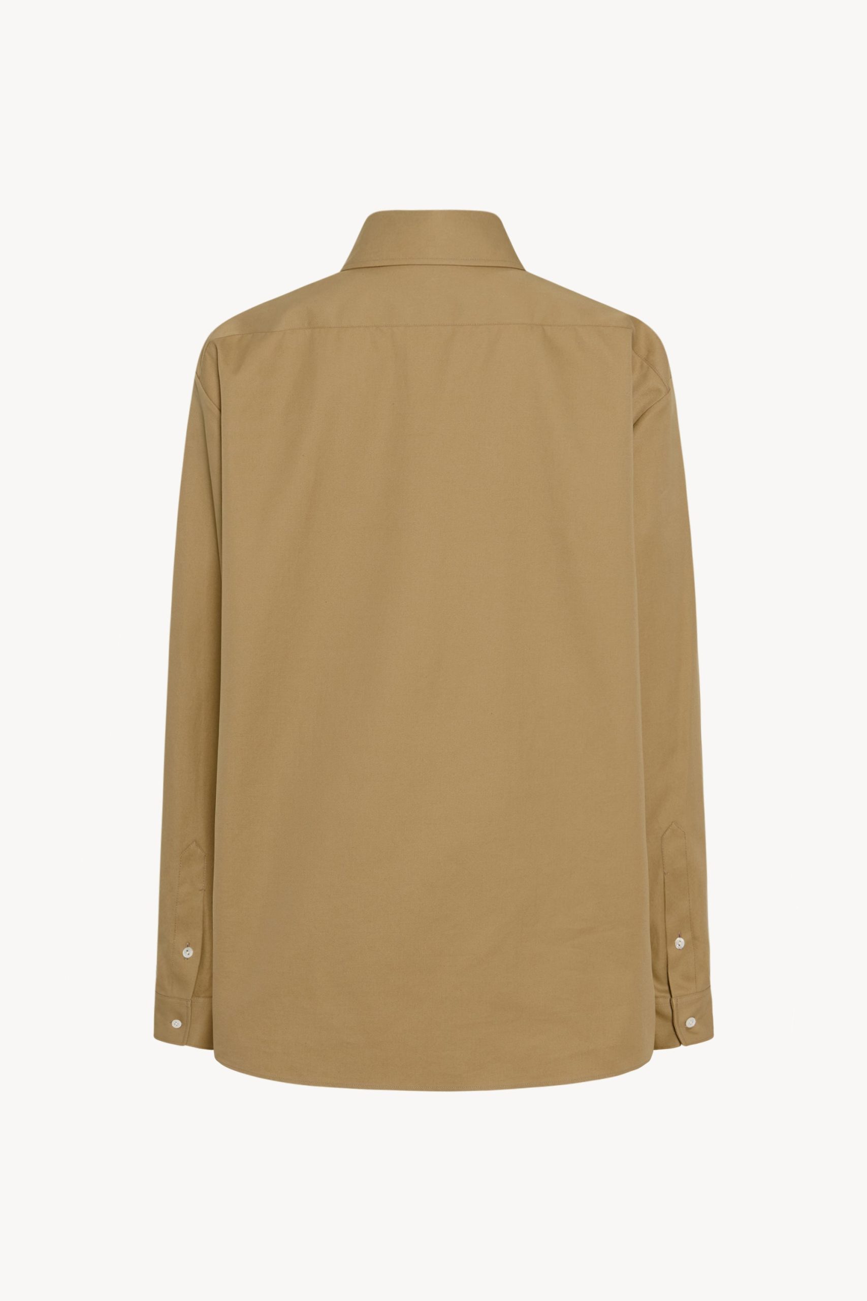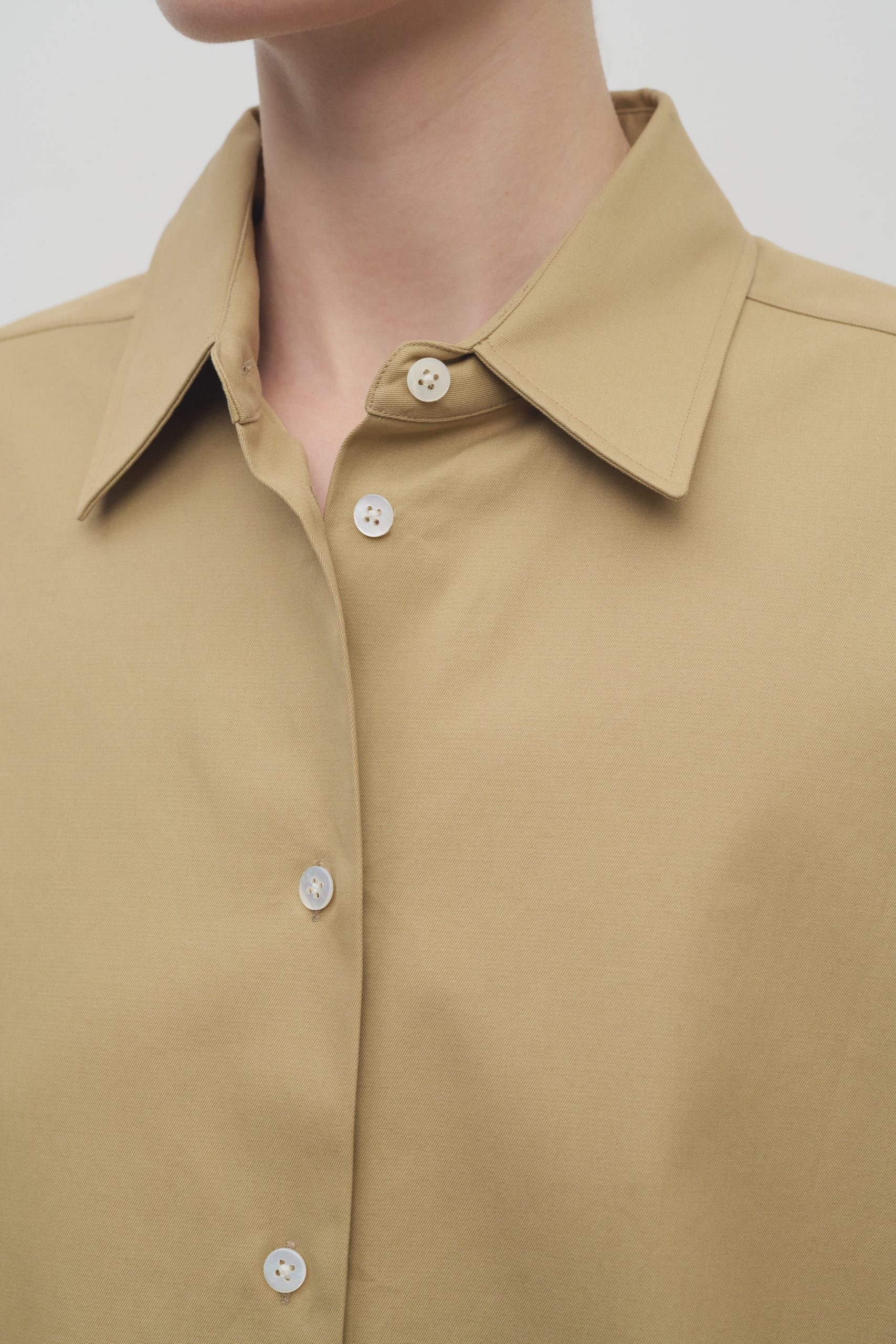 Oversized button-up shirt in soft cotton and cashmere gabardine with slim back yoke and exposed front button placket.