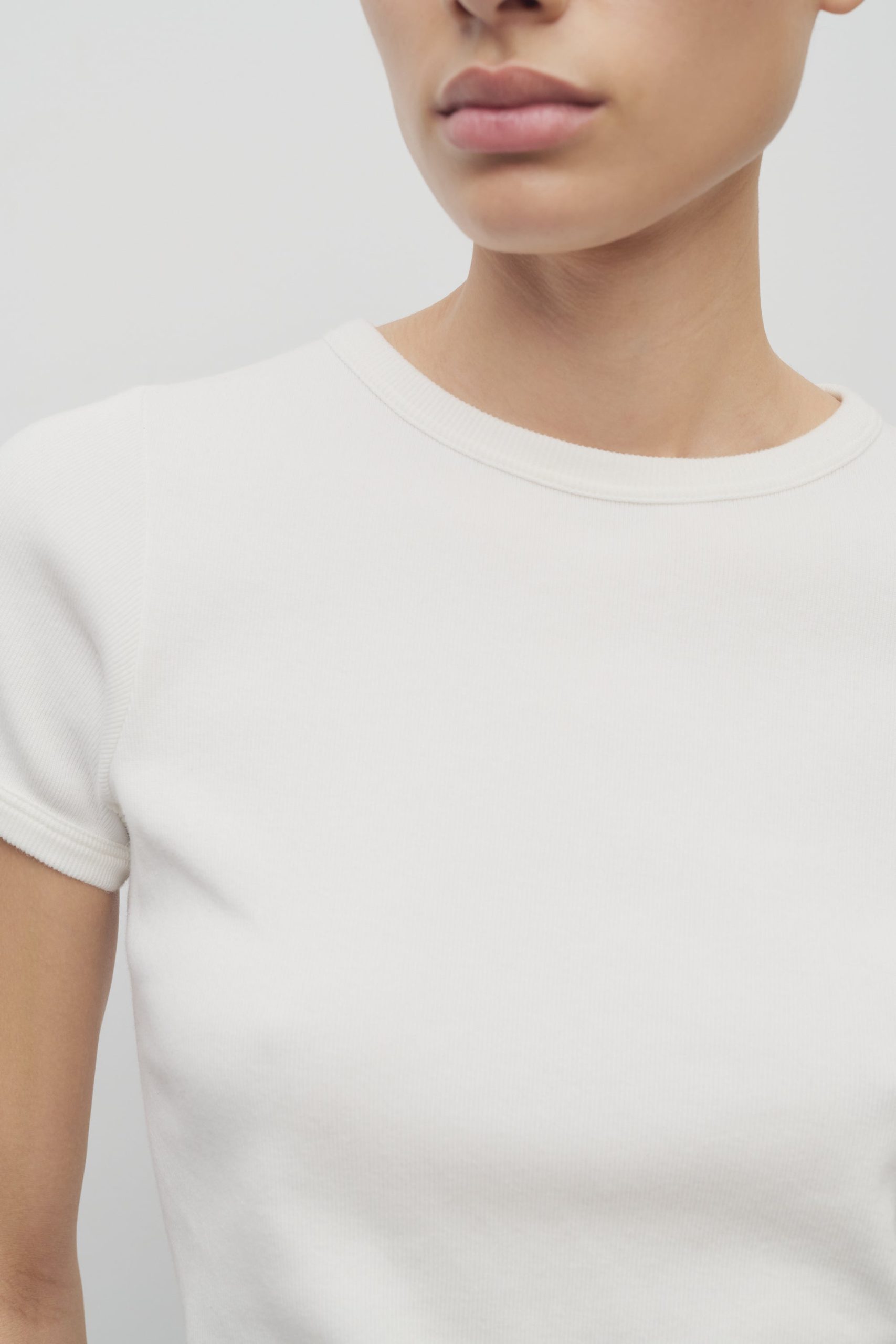 Classic crewneck t-shirt in heavyweight ribbed Japanese cotton with slim fit and ribbed neckline. cuffs. and hem.