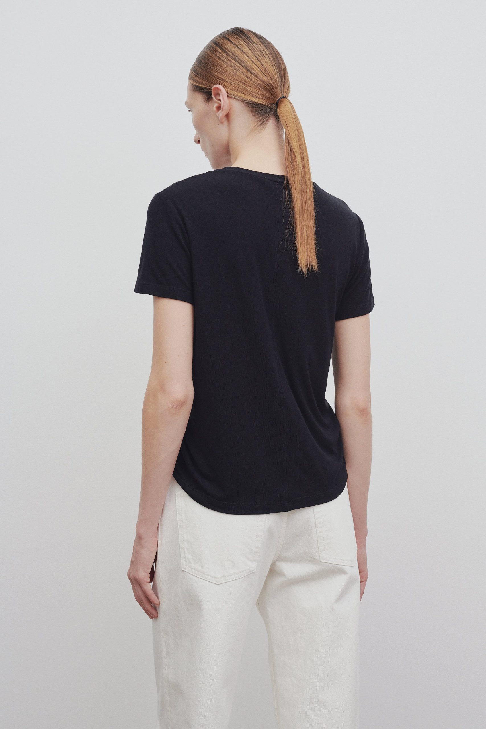 The Row Essentials short-sleeved classic t-shirt in ultra-soft. fluid cotton with signature French seam along the back.