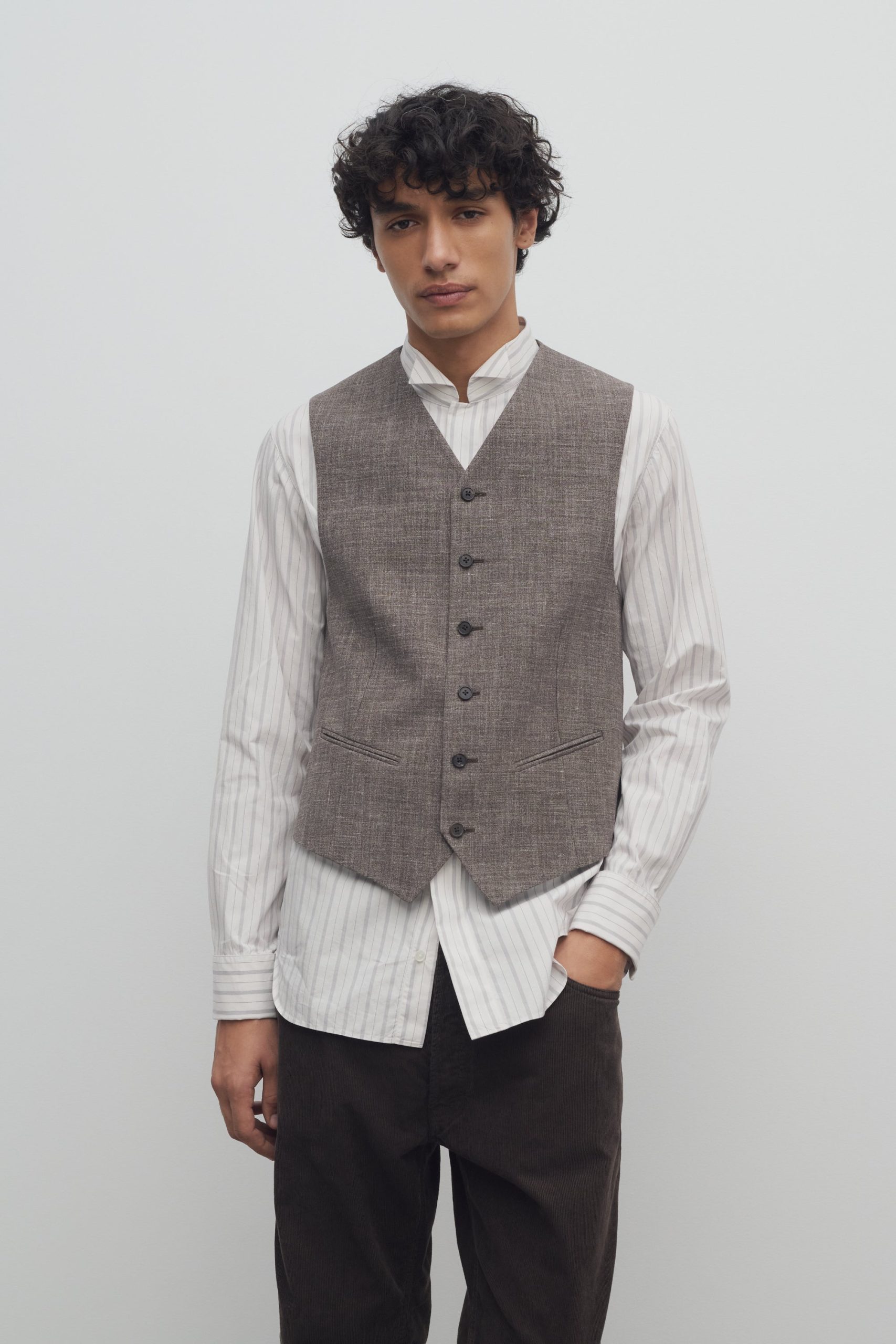 Yuri Vest in Silk. Linen. and Virgin Wool
